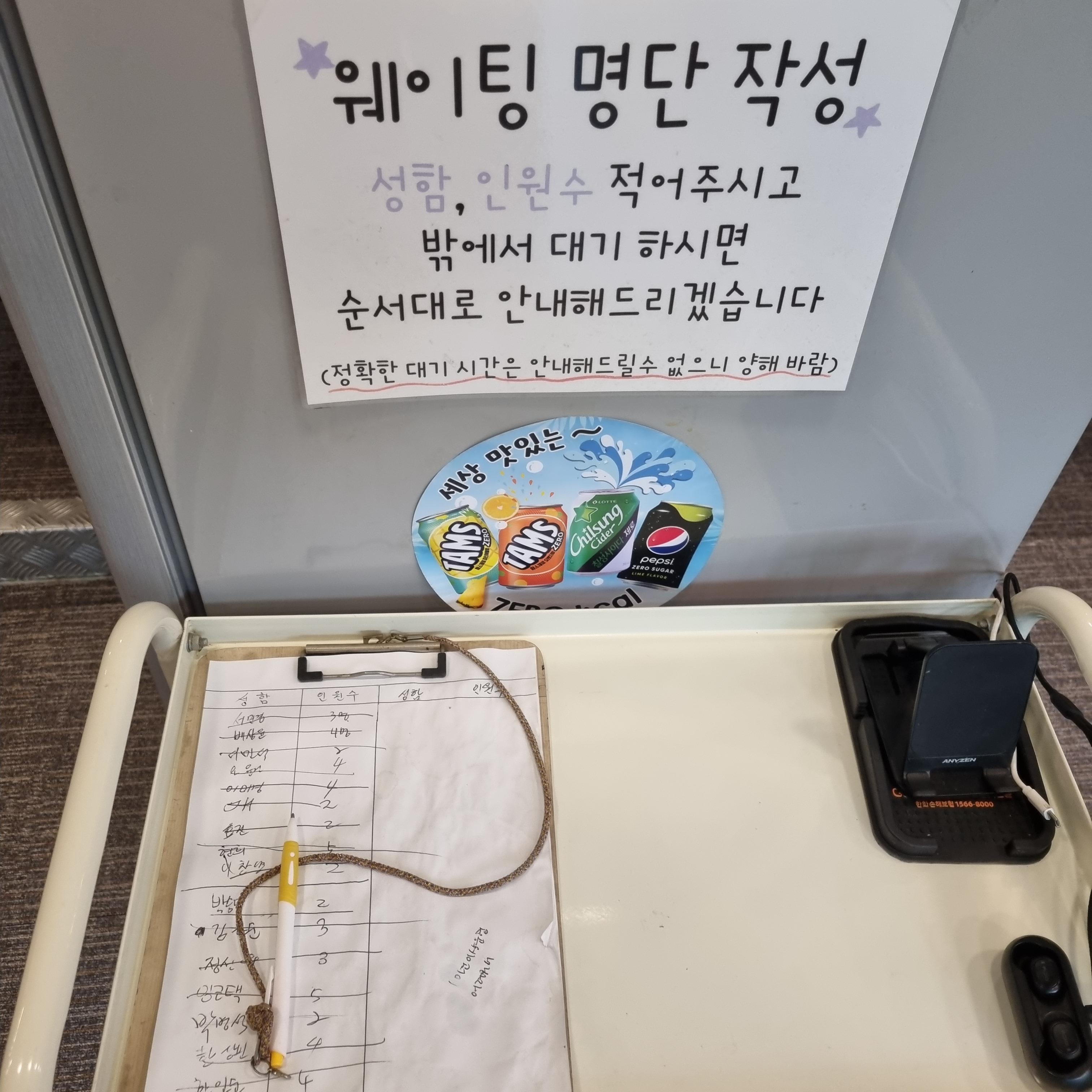 매장 안에 웨이팅 명단 작성하는 것도 있는데 저희는 전화로 예약하고 방문해서 적어보진 않았습니다.