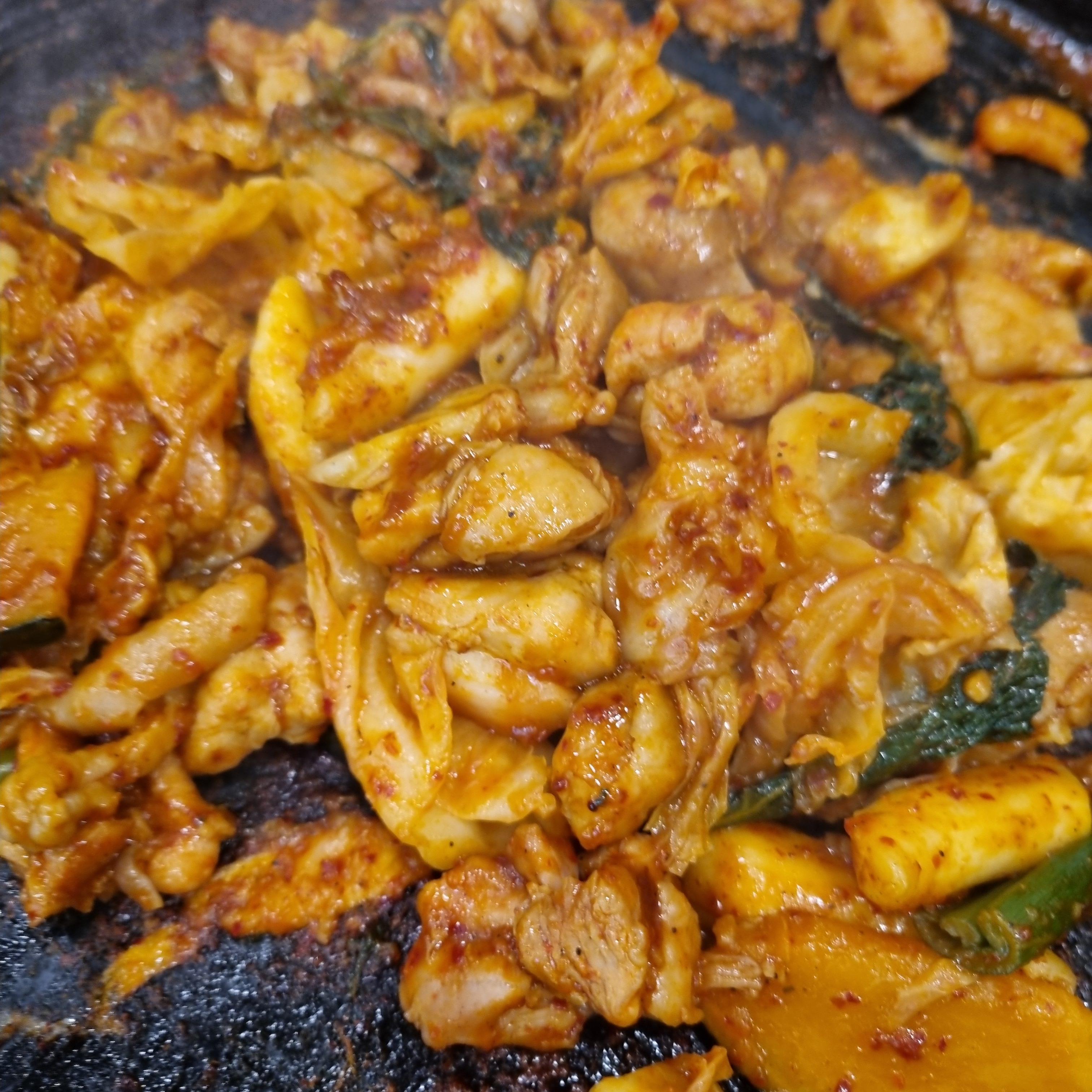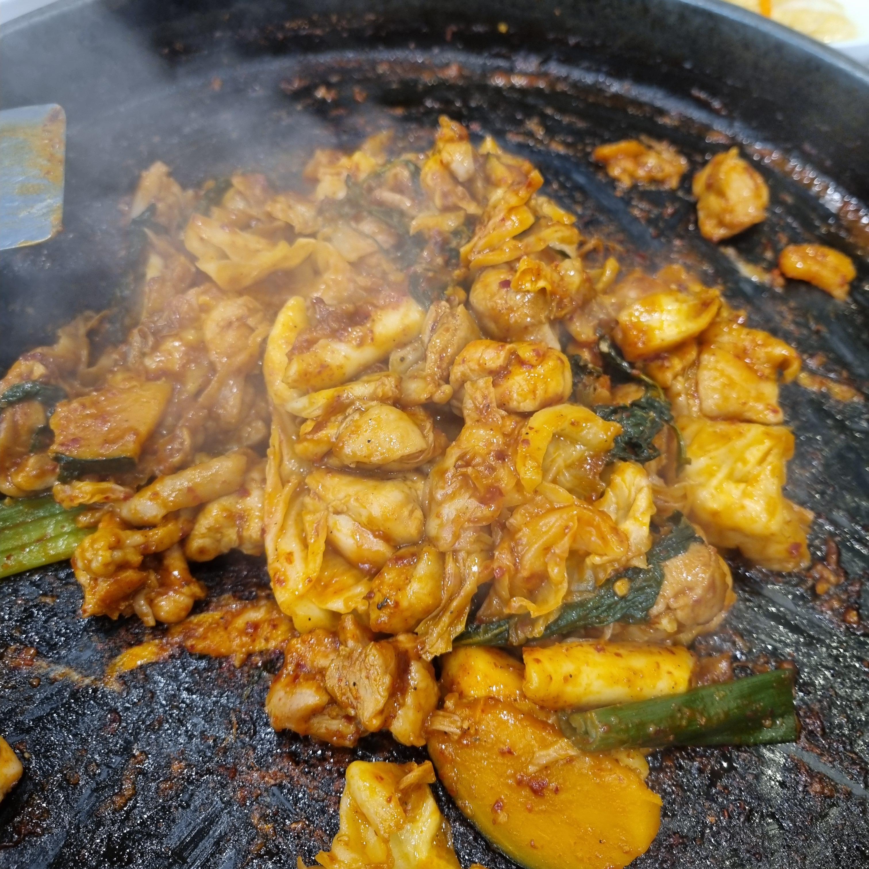 별미닭갈비 2인분입니다. 도착하니까 바로 먹어도 되는 상태입니다. 맛있겠죠? 양배추, 닭이 주재료, 단호박도 간혹 씹혔는데 달달하고 맛있었어요. 떡도 있었던 것 같습니다.