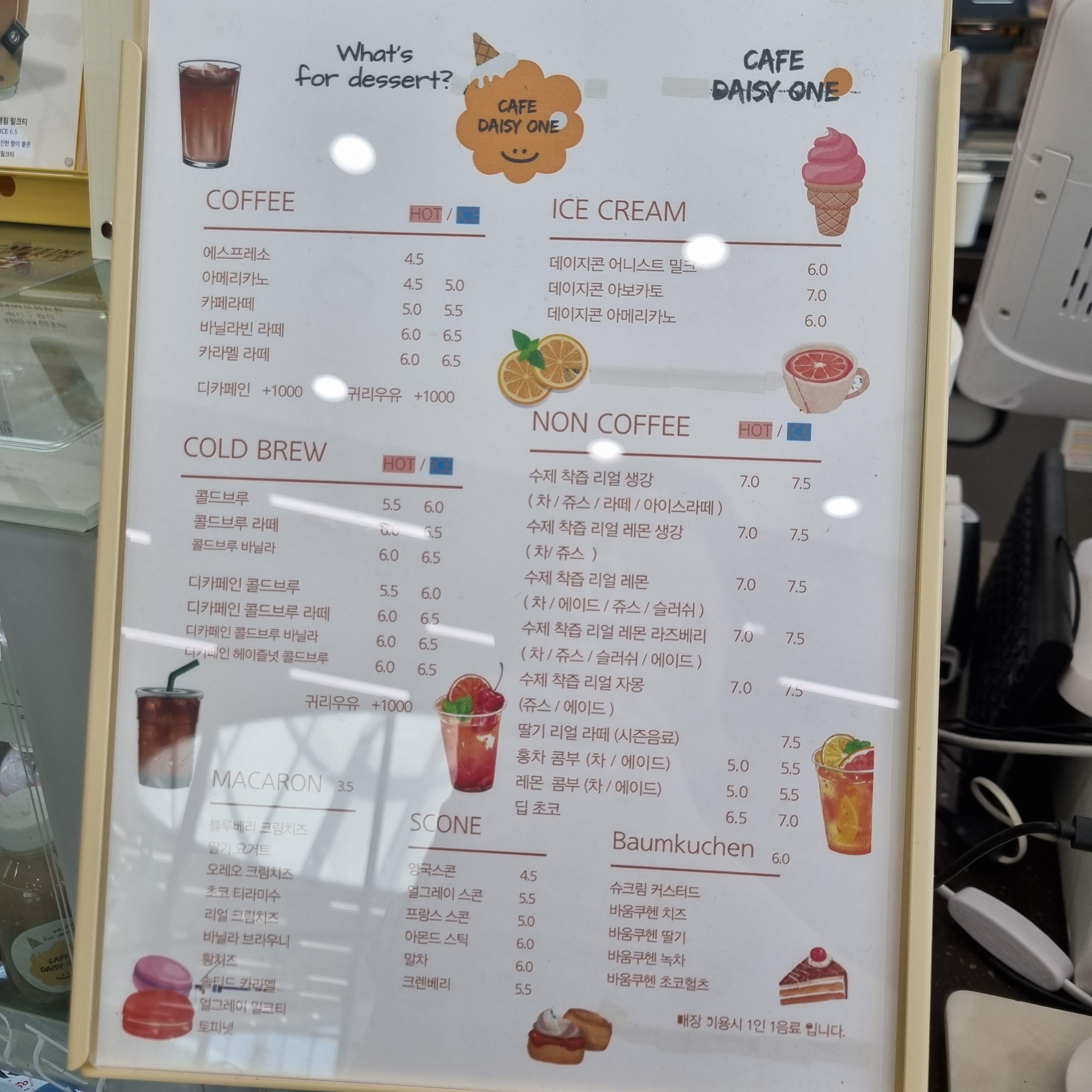아이스 아메리카노 5,000원, 아이스크림 6,000원(데이지콘 어니스트 밀크)