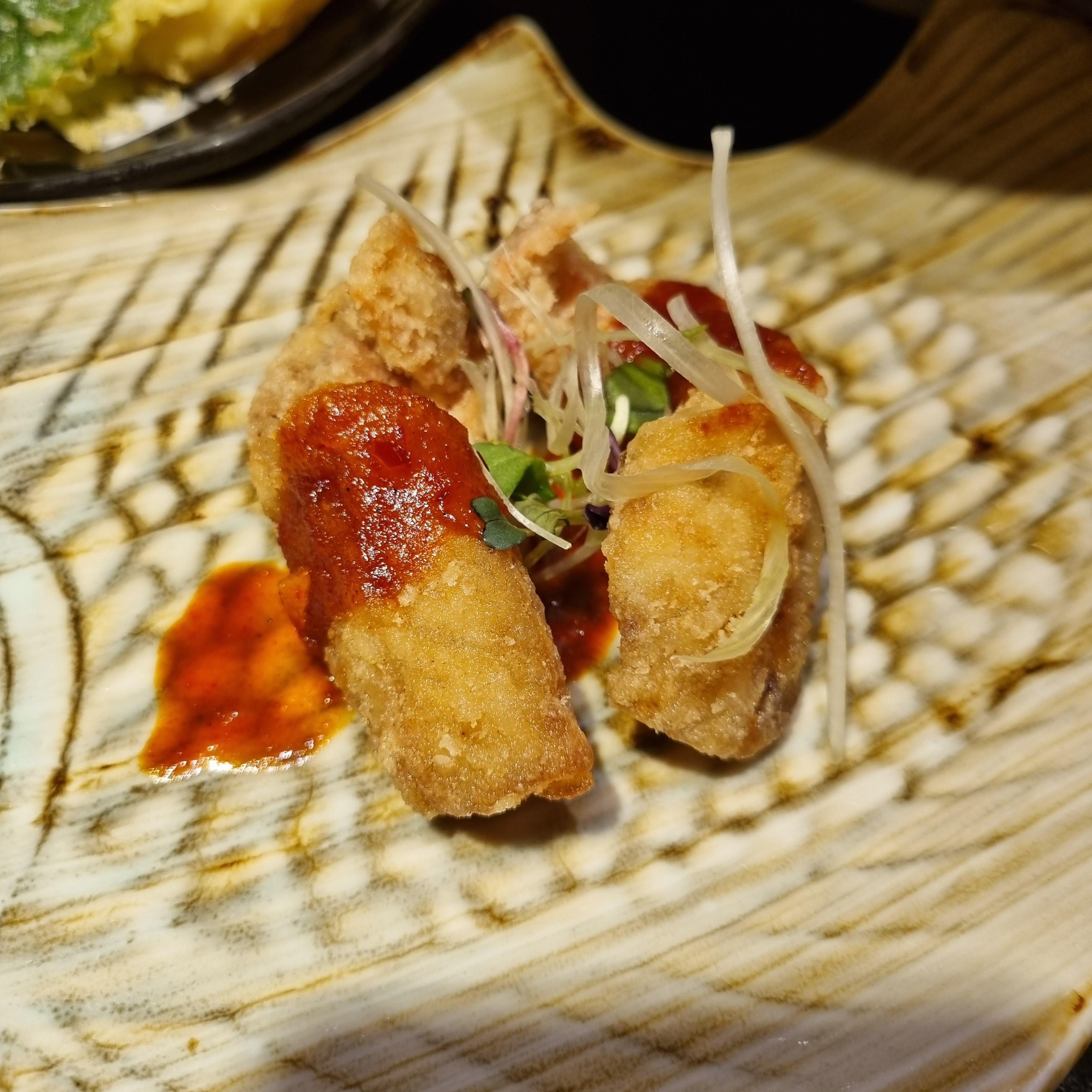 애피타이저인데 콜드푸드입니다. 계란이랑 새우살찜 같아요. 간장색이 나는 것은 참치알 조림이라고 했던 것 같습니.