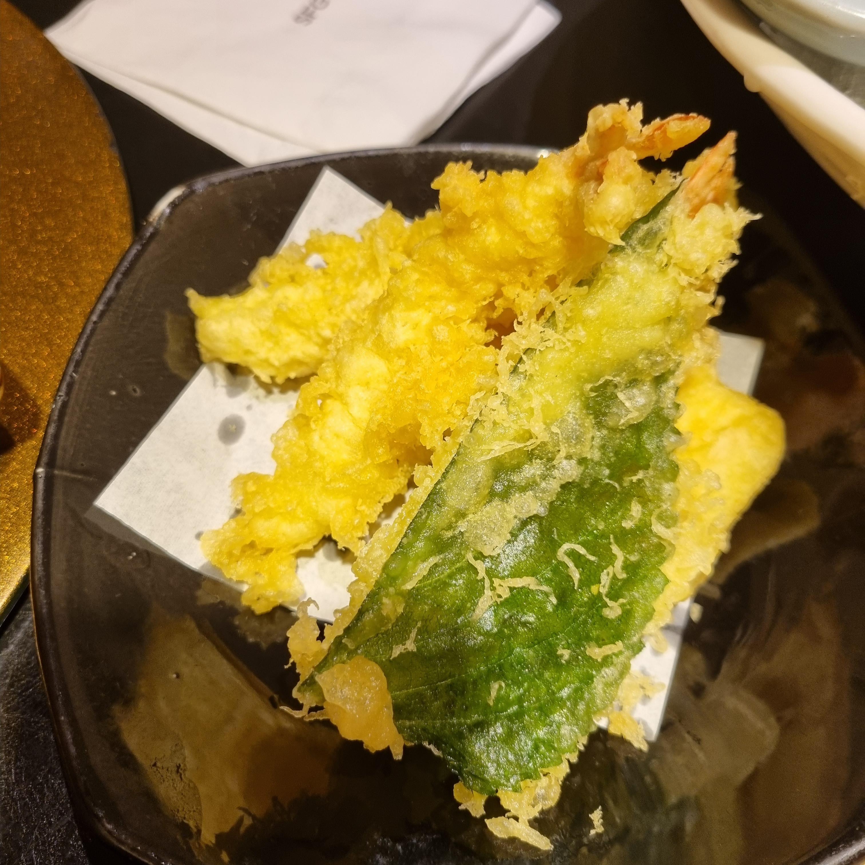 튀김은 맛있습니다. 새우튀김, 깻잎튀김입니다. 고구마튀김도 보이지 않는 곳에 숨어 있습니다.