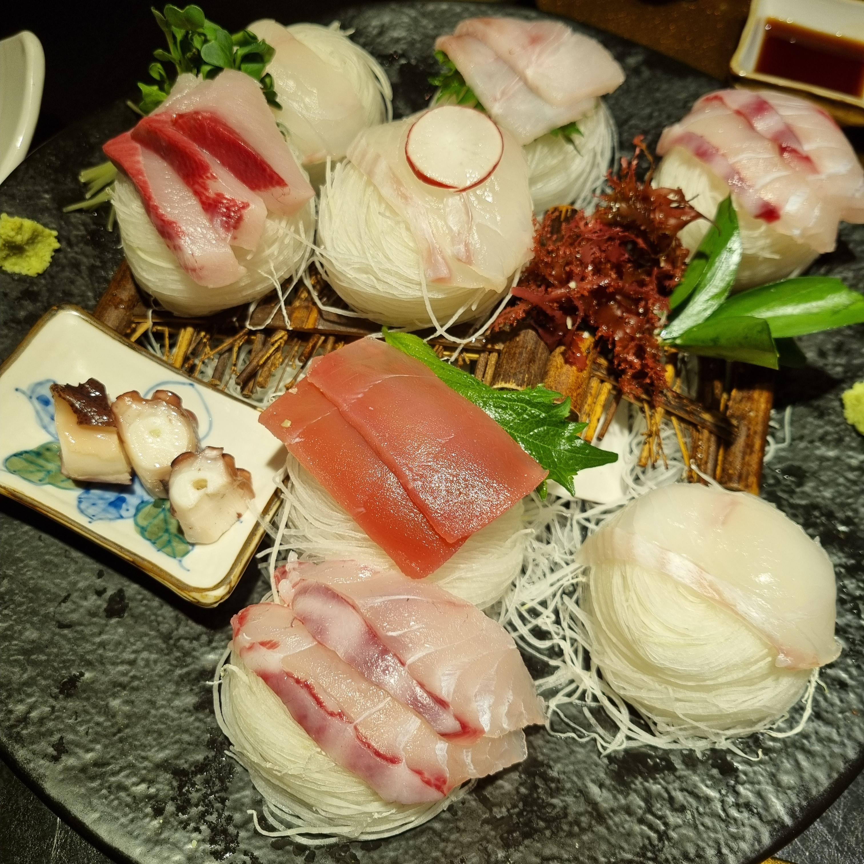 역시 메인은 사시미입니다. 둘이 먹은 거니 양이 많진 않아요. 다양하게 맛보는 정도랍니다.