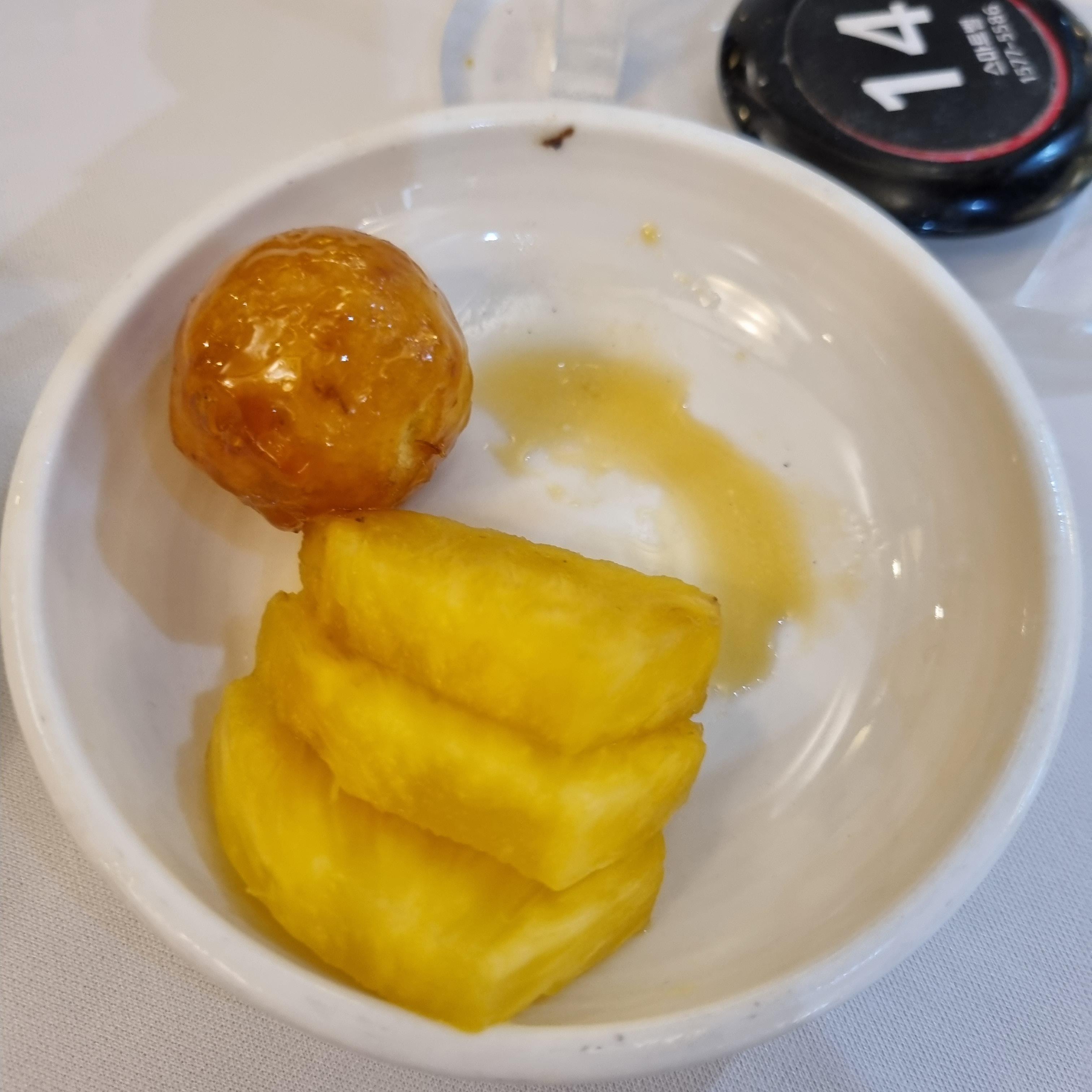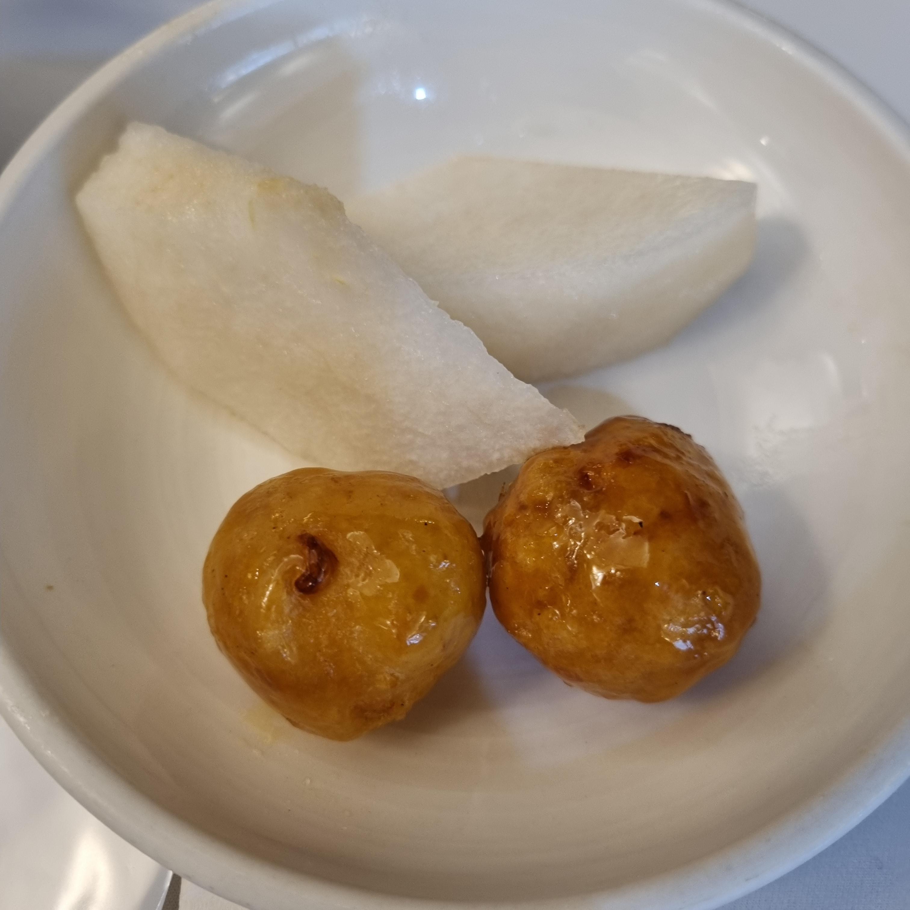 진짜 후식입니다. 튀긴 거랑 배가 나오네요. 사진은 2인분이에요.
