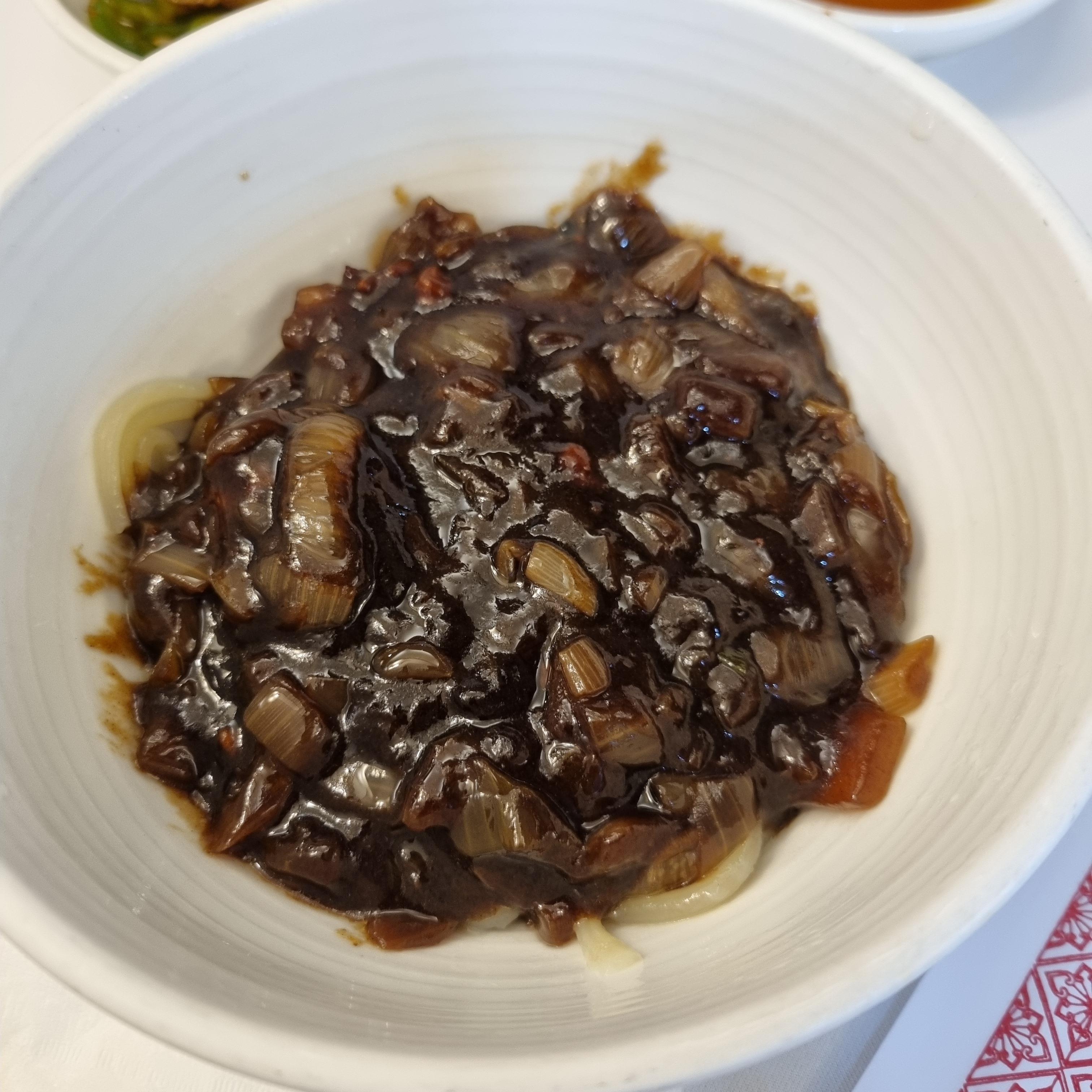 따로 나온 간짜장 소스입니다. 너무 달지도 않고 야채가 아삭하니 맛있습니다. 양파와 야채 상태를 보니 지금 막 볶아서 나온 게 맞습니다. 저는 이런 식감이 좋아서 맛있게 먹었지만 안 익은 양파를 안 좋아하신다면 싫어하실 거 같아요. 돼지고기와 간혹 작은 새우가 보입니다. 돼지고기는 국내산 돼지고기를 쓰신다고 메뉴판에서 보았던 것 같습니다. 오징어나 새우가 많지 않아 삼선이라는 이름에 걸맞은지 고민이 살짝 되었습니다. 제가 자주 가는 중국집(을지로 남강) 보다 가격은 비싼데 해물이 많다는 느낌이 들지 않았기 때문입니다.