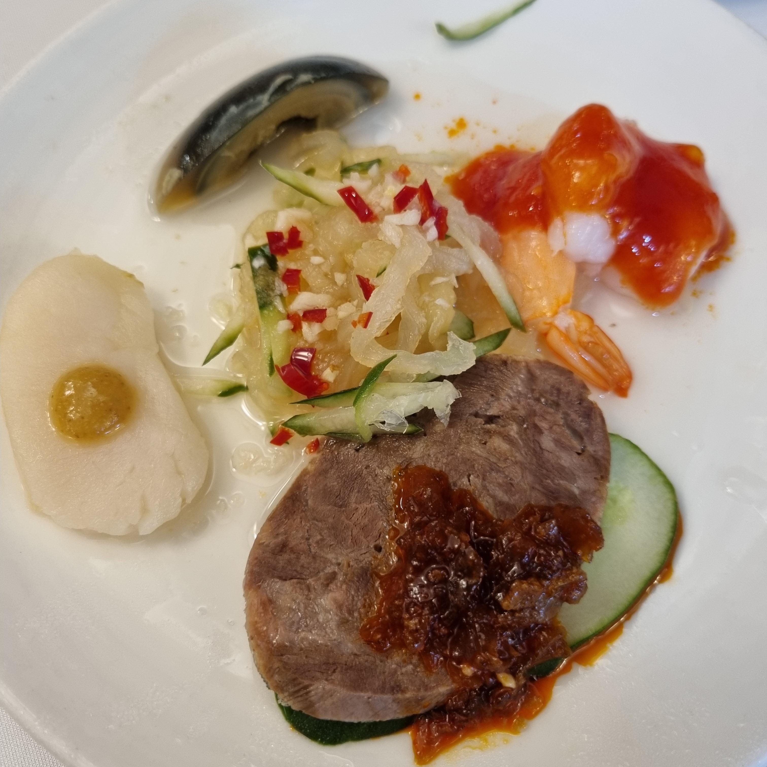 사품냉채부터 나왔어요. 가리비는 해동해서 그런지 식감이 좋은 편은 아니었지만 해파리는 입맛 돋우기 좋았어요. 새우도 통통했어요.