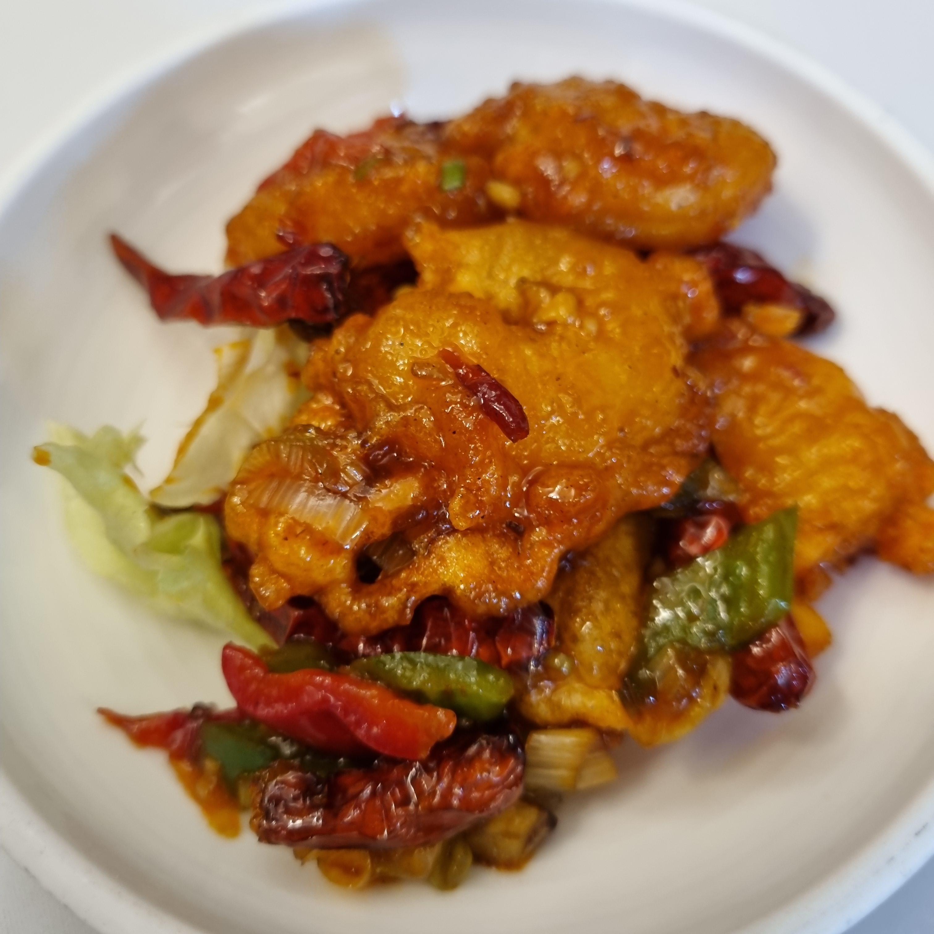 깐쇼새우입니다. 정말 매콤했고 튀긴 새우살 아래엔 양배추가 조금 깔려있었어요.