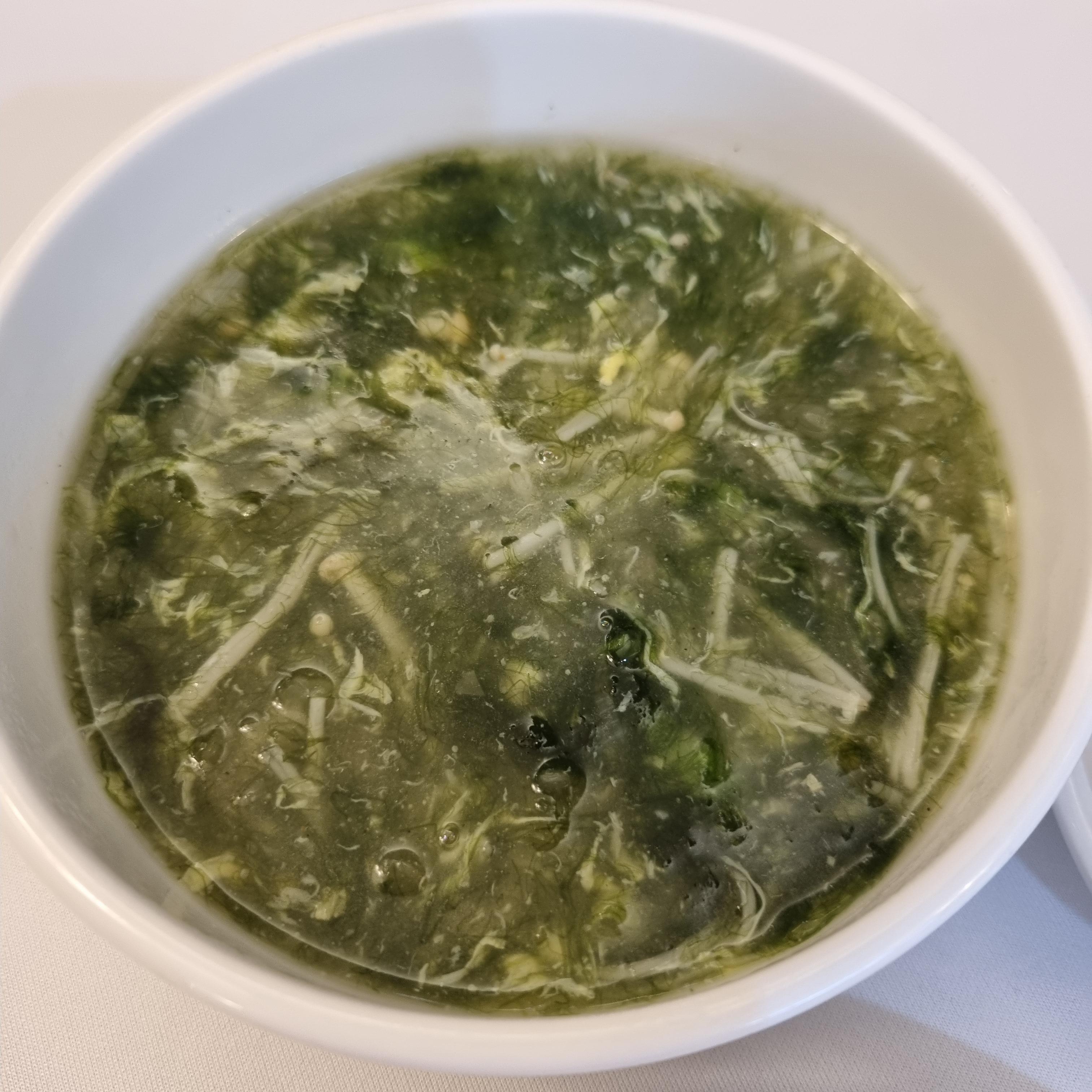 매생이수프입니다. 게살수프로 변경이 안되더라고요. 팽이버섯 식감도 괜찮더라고요. 근데 좀 짭짤한 편이었어요.