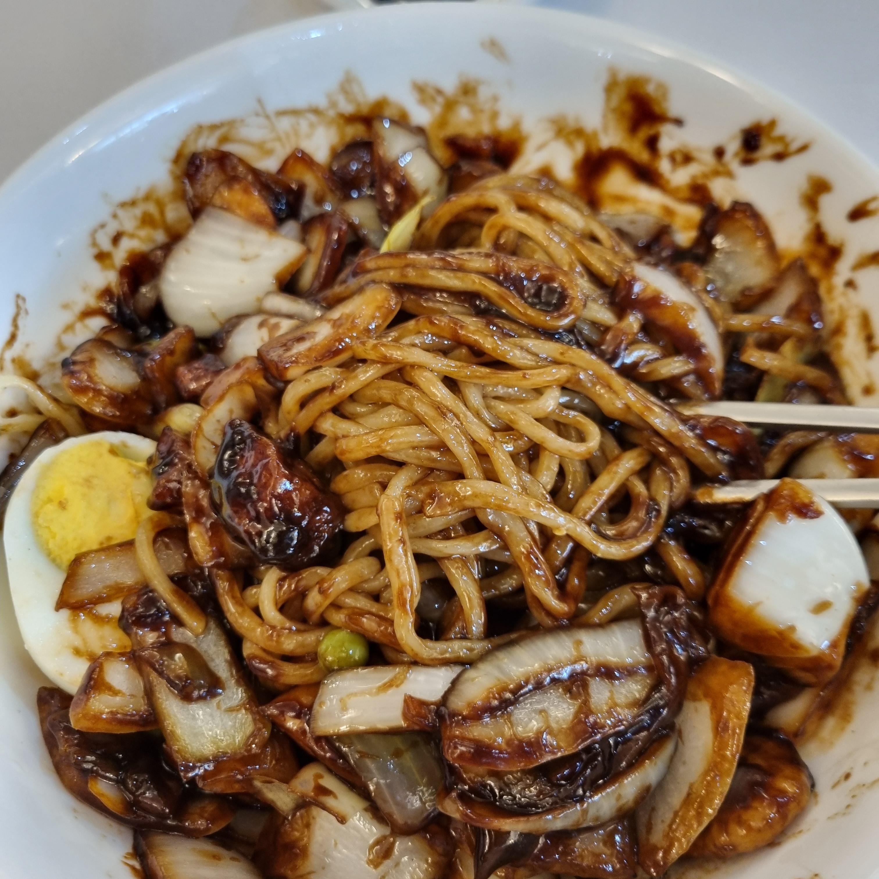 후식을 주문하라고 하십니다. 짜장면, 짬뽕 중에 짜장면을 선택했어요. 큰 그릇은 아니지만 이미 배가 부르니 좀 남겼습니다.