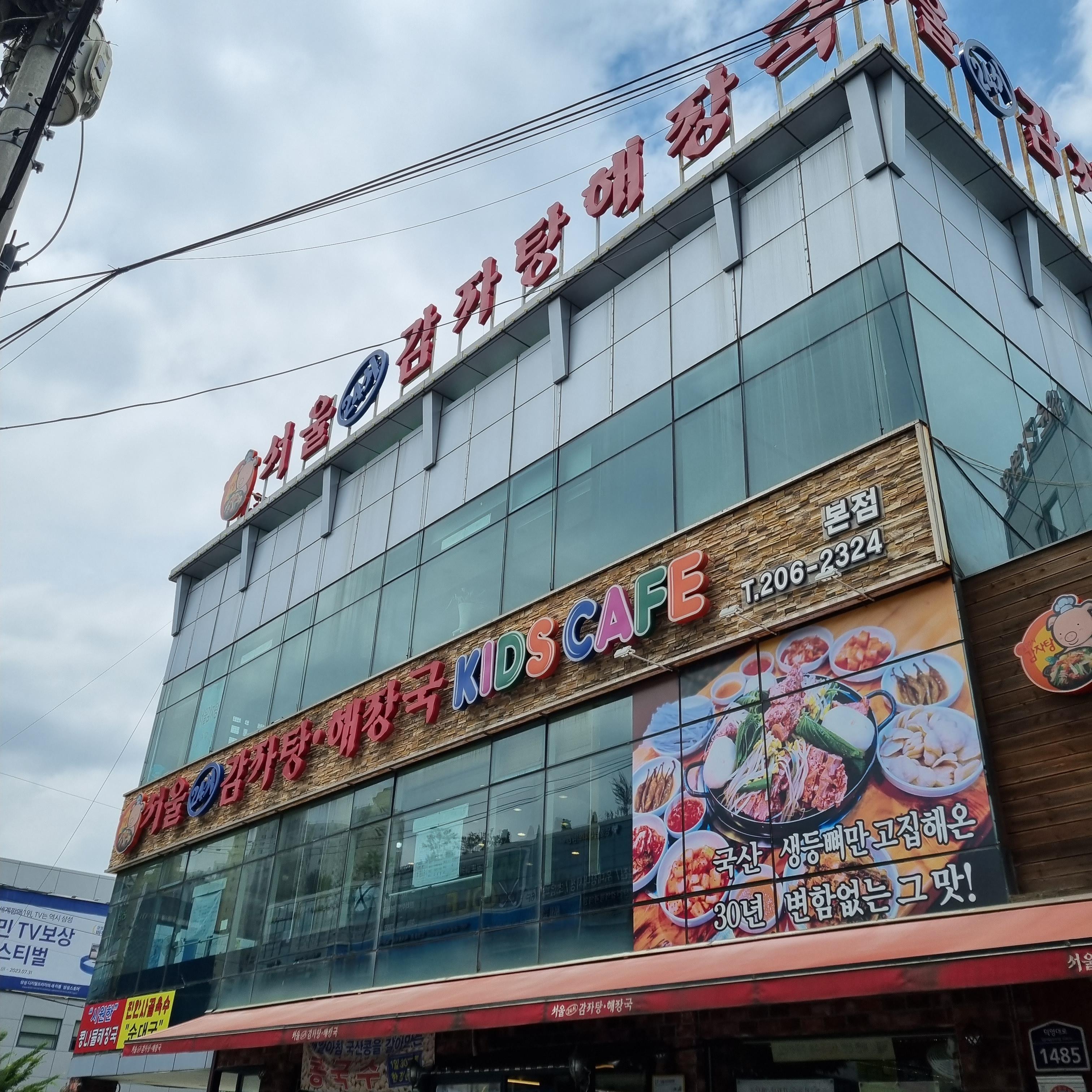 서울24시감자탕해장국본점은 수원 영통 망포역 인근에 있습니다. 식당 단독 건물이고 그 옆에 주차장도 있습니다. 주차장 정보는 아래서 안내드릴게요. 식당 1층에서는 식사를 해본 적이 없습니다. 2층에 키즈카페가 있기 때문입니다. 아이랑 함께 왔다면 무조건 2층으로 올라와주세요.