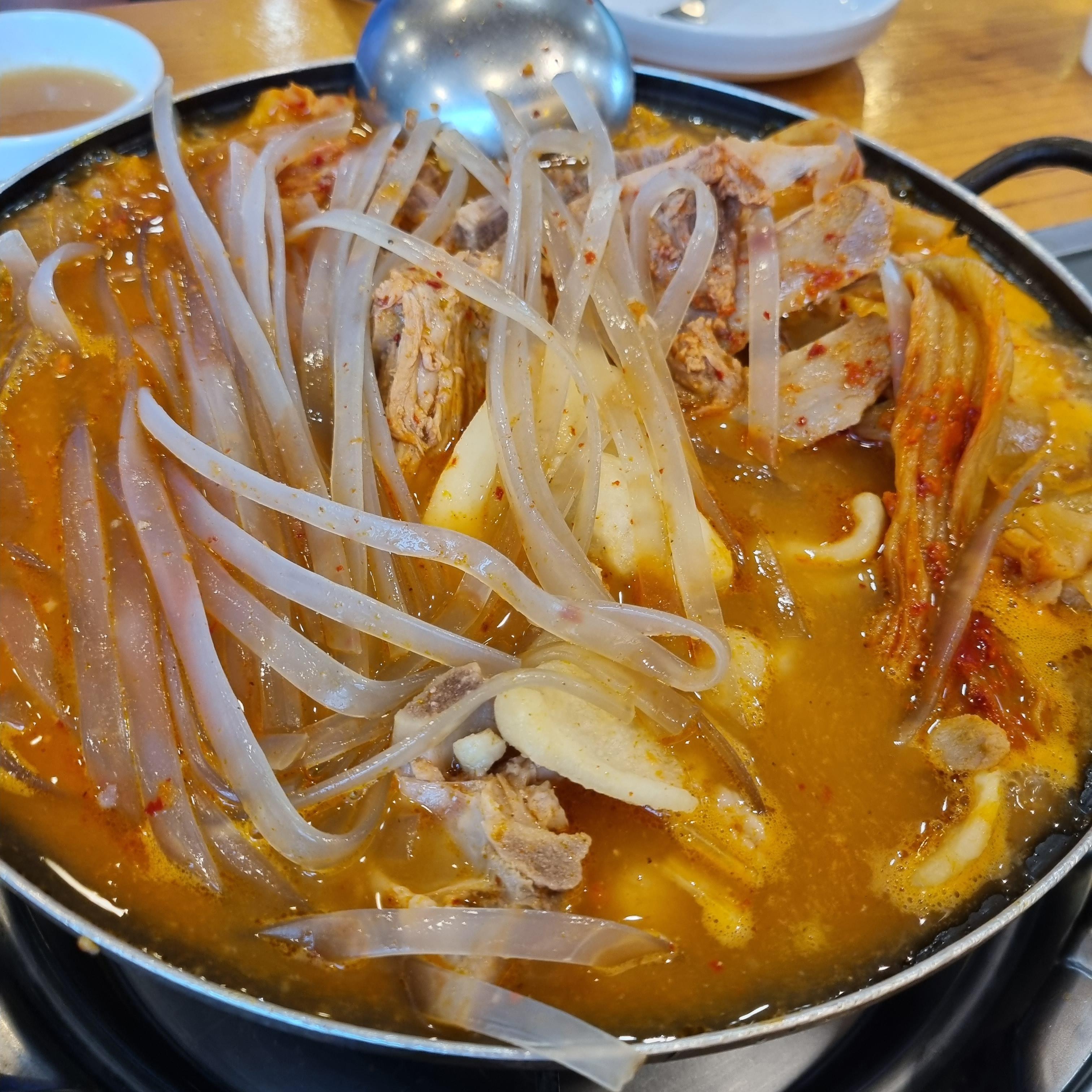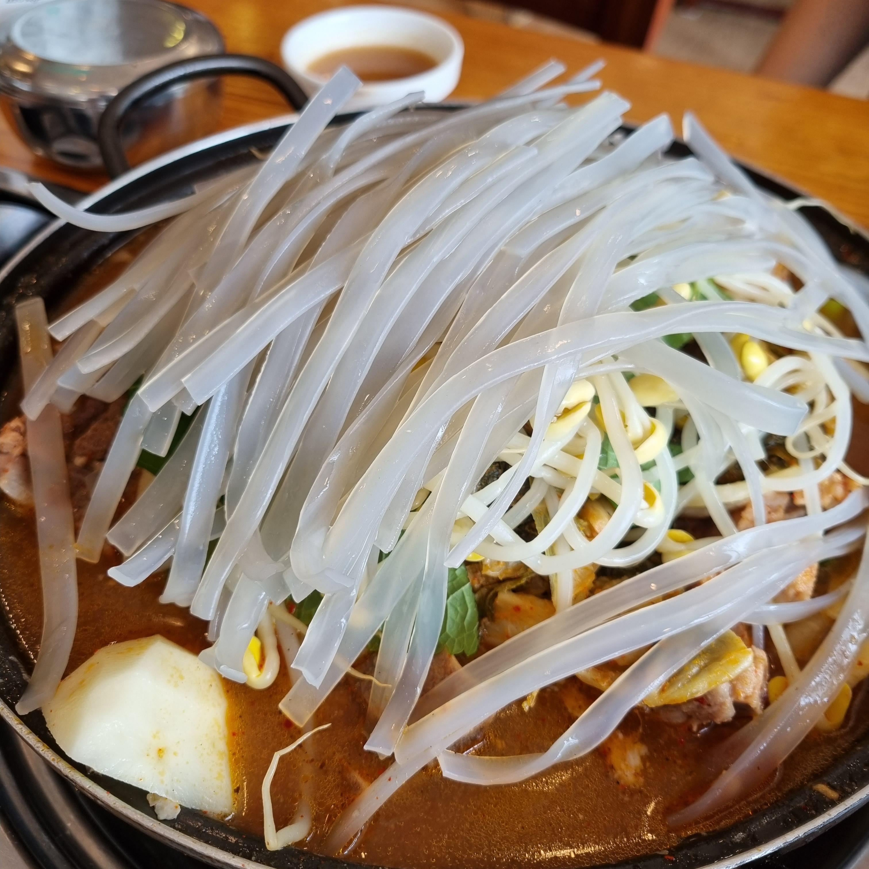 나오자마자 찍었어야 했는데 깜박했습니다. 넓적 당면과 수제비 등이 들어가 있습니다. 묵으지감자탕이라 묵은지도 들어가 있네요. 제 입맛에는 묵은지보다 서울감자탕이 더 맛있었던 것 같습니다. 감자탕을 먹고 오면 짜다는 느낌이 들지만 오늘은 특별히 짜다는 느낌이 들진 않았습니다.