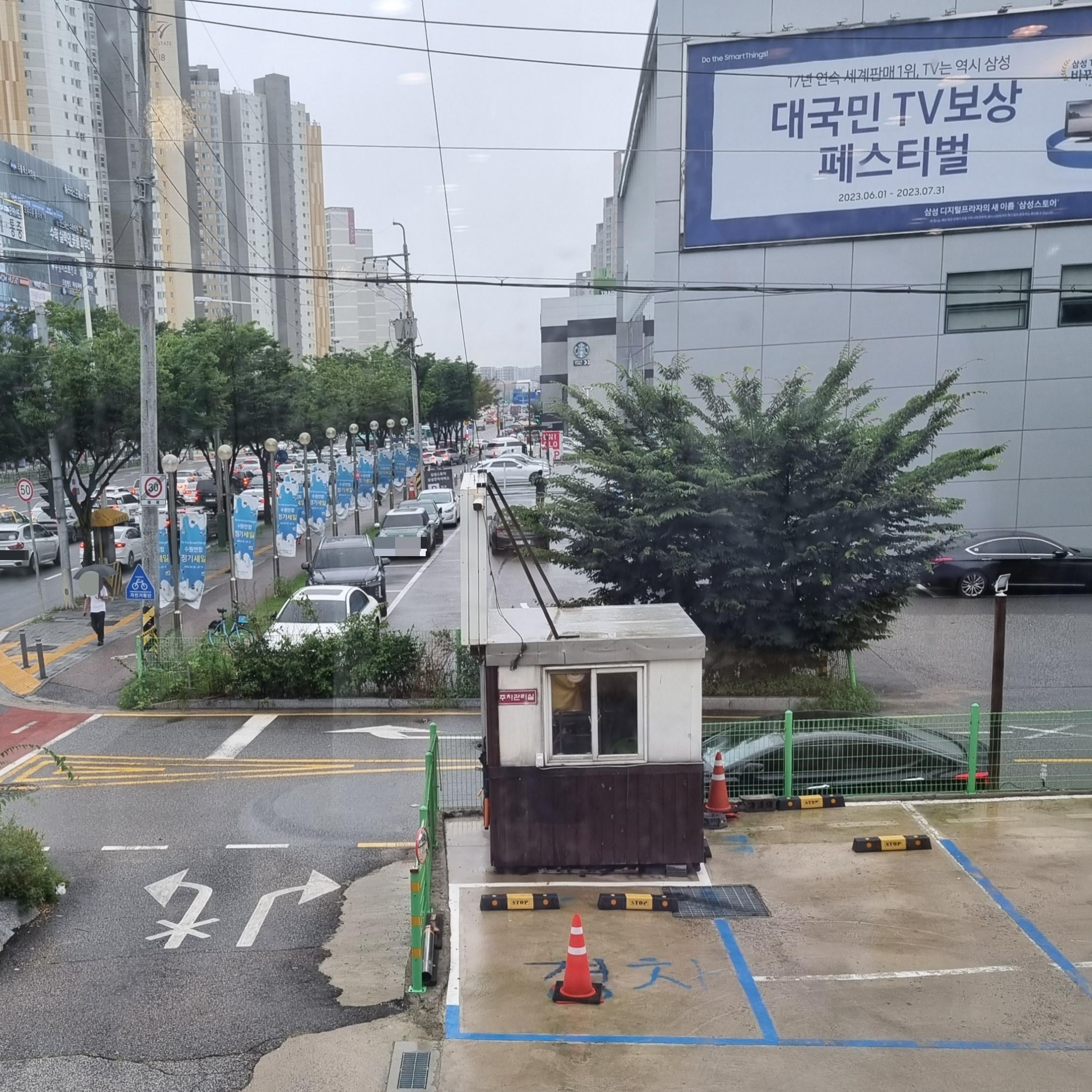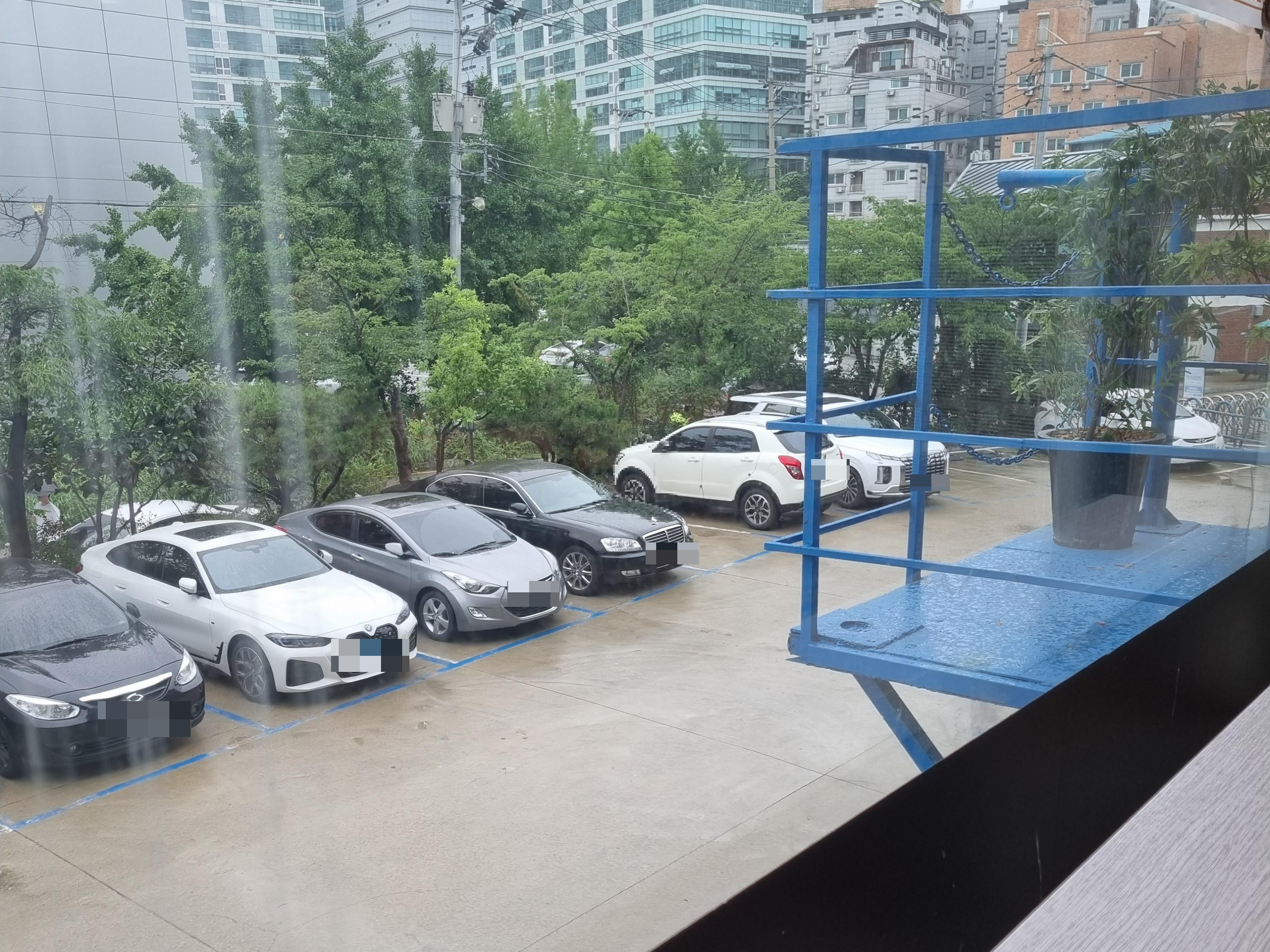 비 오는 토요일 점심 주차장 만차