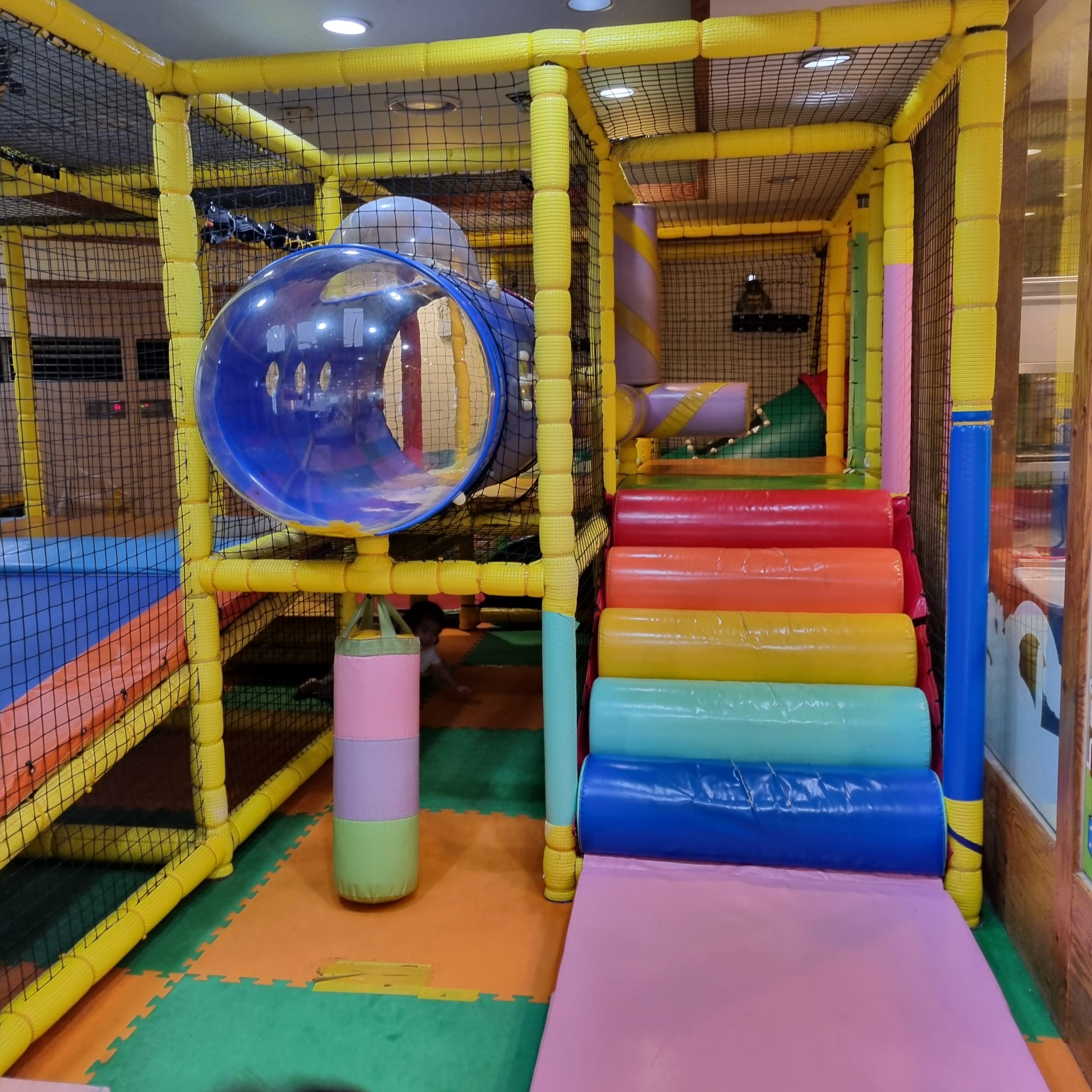 세월이 느껴지는 놀이방이지만 아이들에겐 행복한 놀이터입니다. 모르는 친구들과도 트럼폴린에서 펄쩍펄쩍 뛰어 놀더라고요.