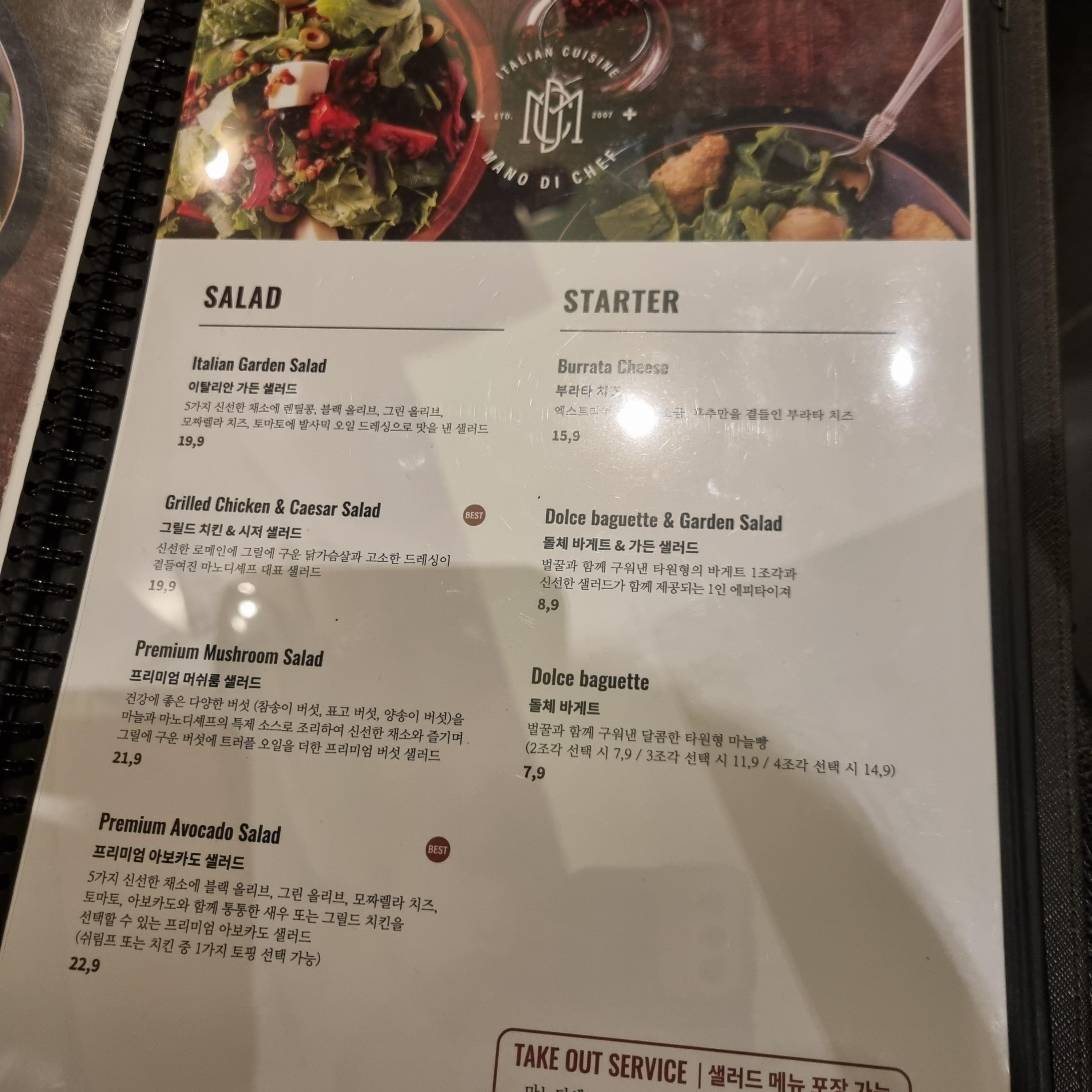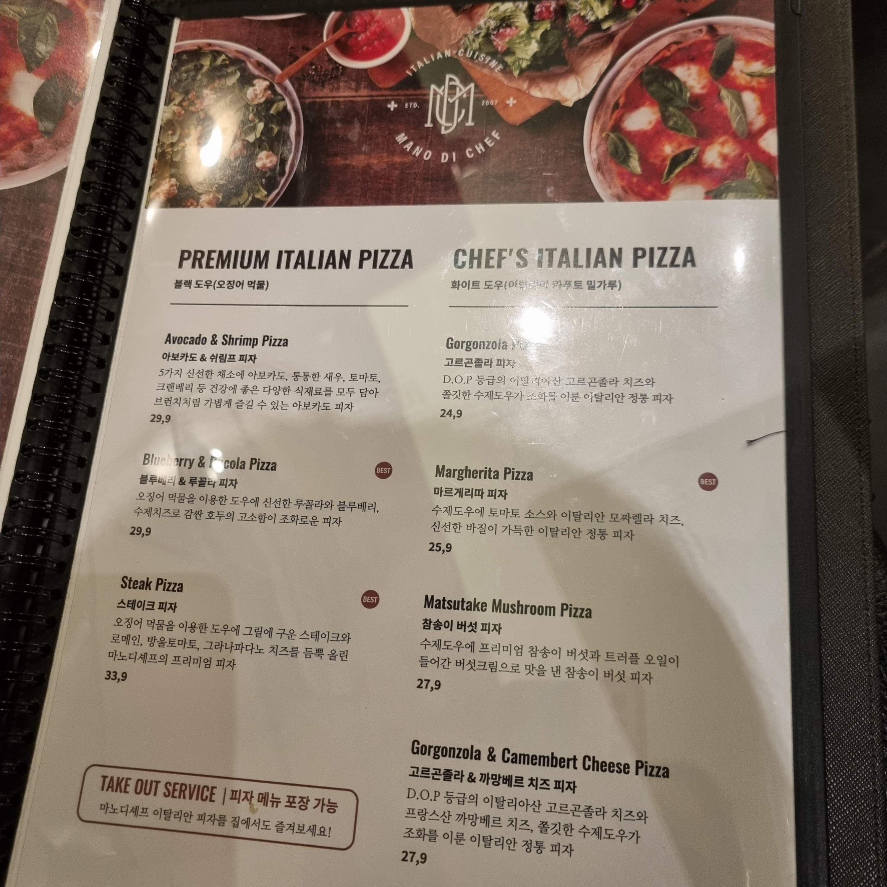 마노디셰프 메뉴판