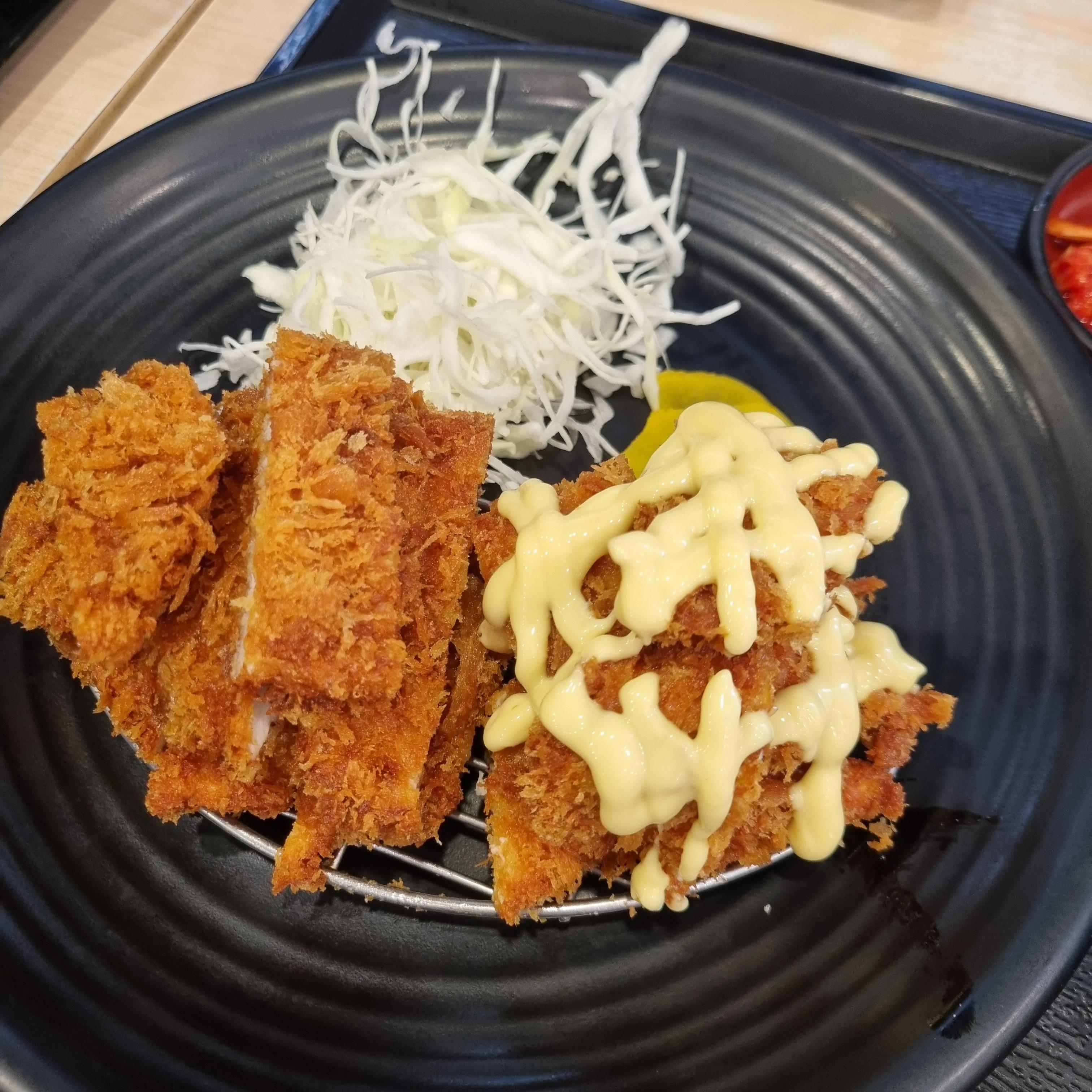 먹다가 치킨가스를 찍어보았습니다. 치킨가스는 퍽퍽한 맛없이 촉촉합니다. 역시 잘 튀겨냈습니다. 돈가스만 먹기엔 지루할 것 같은데 치킨가스와 함께 먹으니 다양해서 좋습니다.