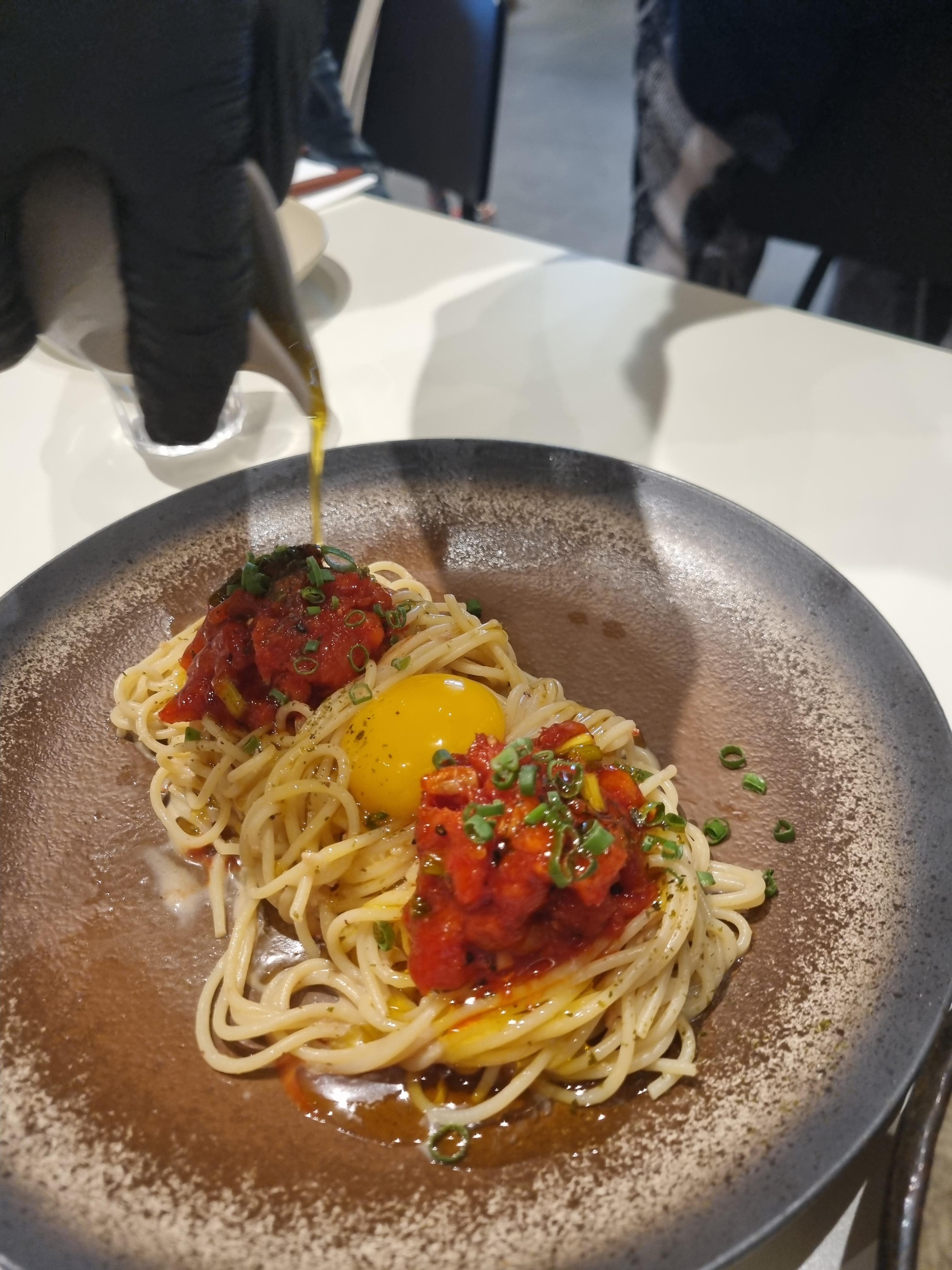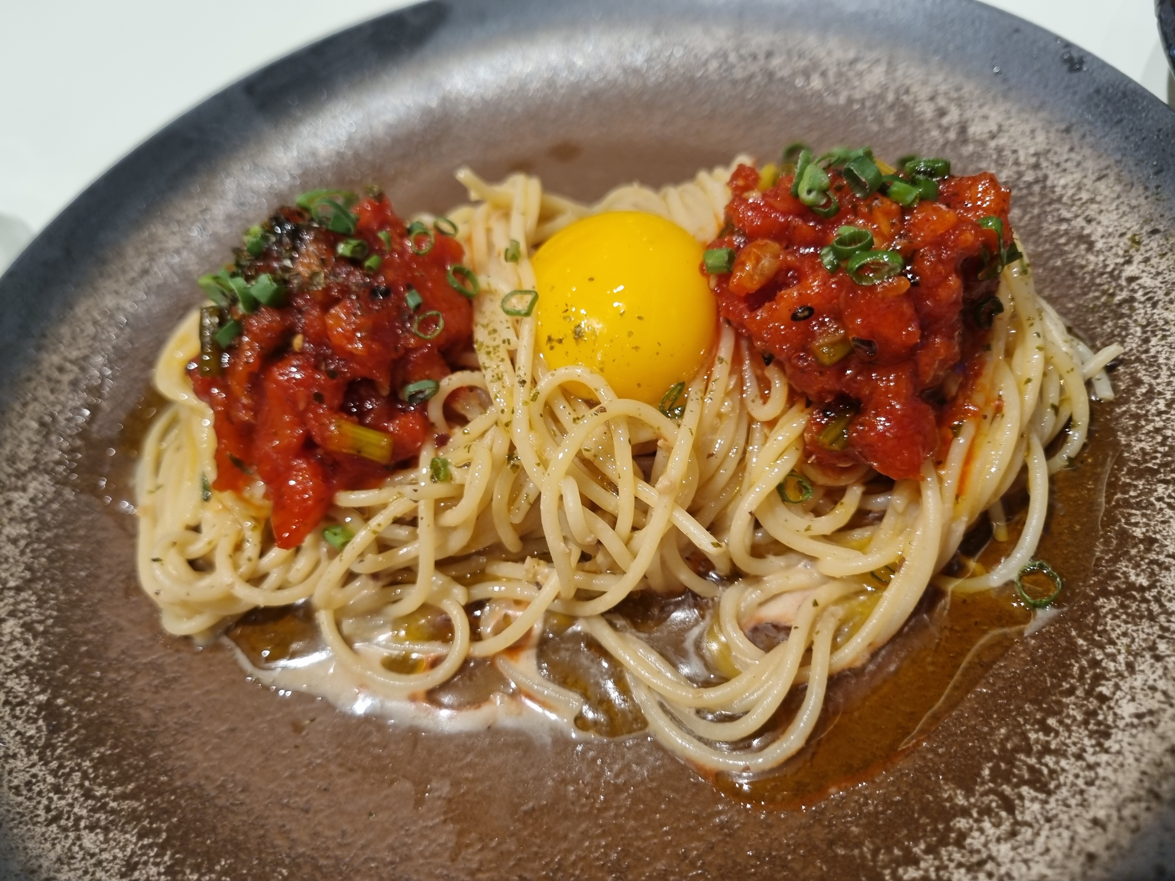 먹기 전엔 모를 수 있는 맛인데 따뜻하지 않고 차가운 파스타입니다. 시그니처답게 맛있는데 처음에 들기름이 따로 나오고 서버가 들기름을 부어줍니다. 섞어서 맛있게 먹었어요.
