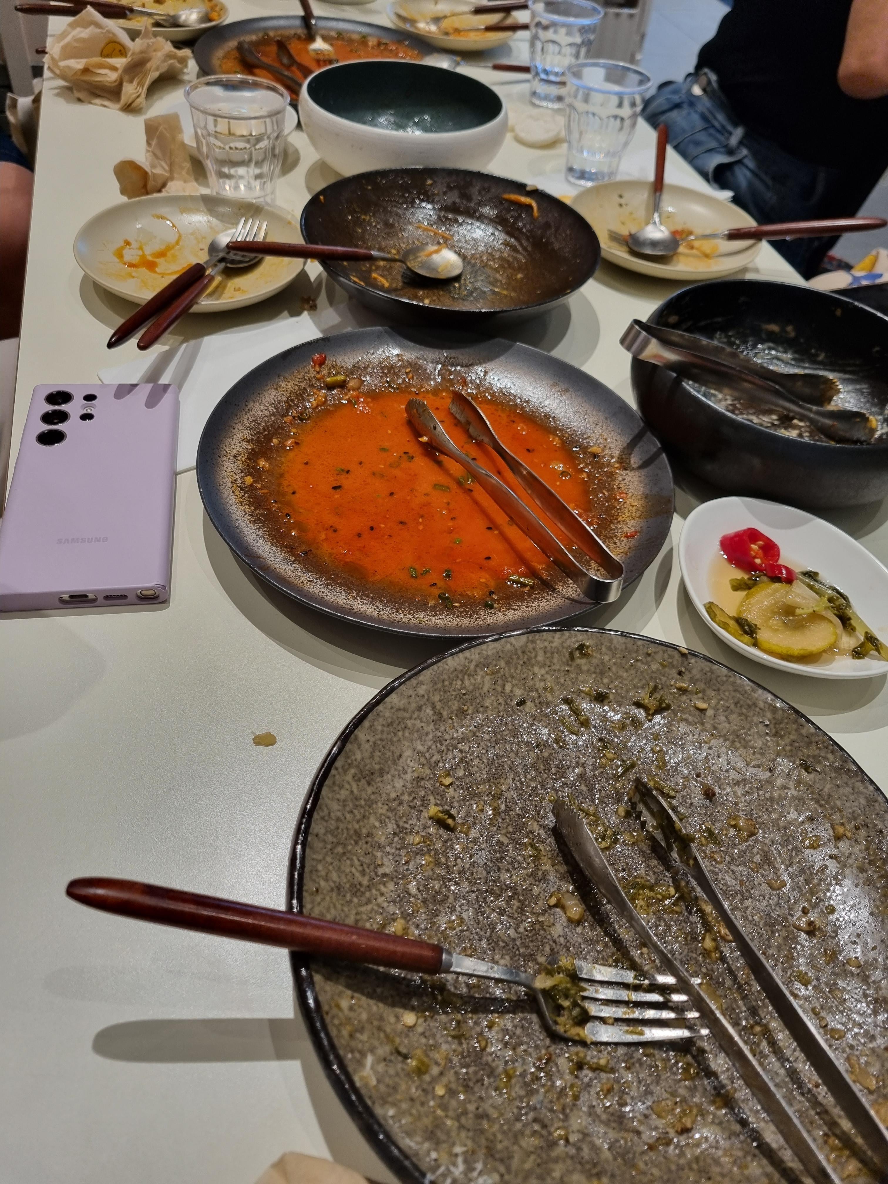 들어가기 전에 망설이게 만든 메뉴판입니다. 한글로 적혀있지만 어떤 맛일지 도무지 가늠이 안되더라고요. 하지만 싹싹 긁어먹는 듯한 빈 접시가 보이시나요? 음식이 독특하면서 정갈하다는 느낌을 받았는데 식당 분위기도 차분하고 좋았어요. 재방문의사 있습니다. 유일하게 단점을 꼽으라면 가격 대비 양은 적어요.