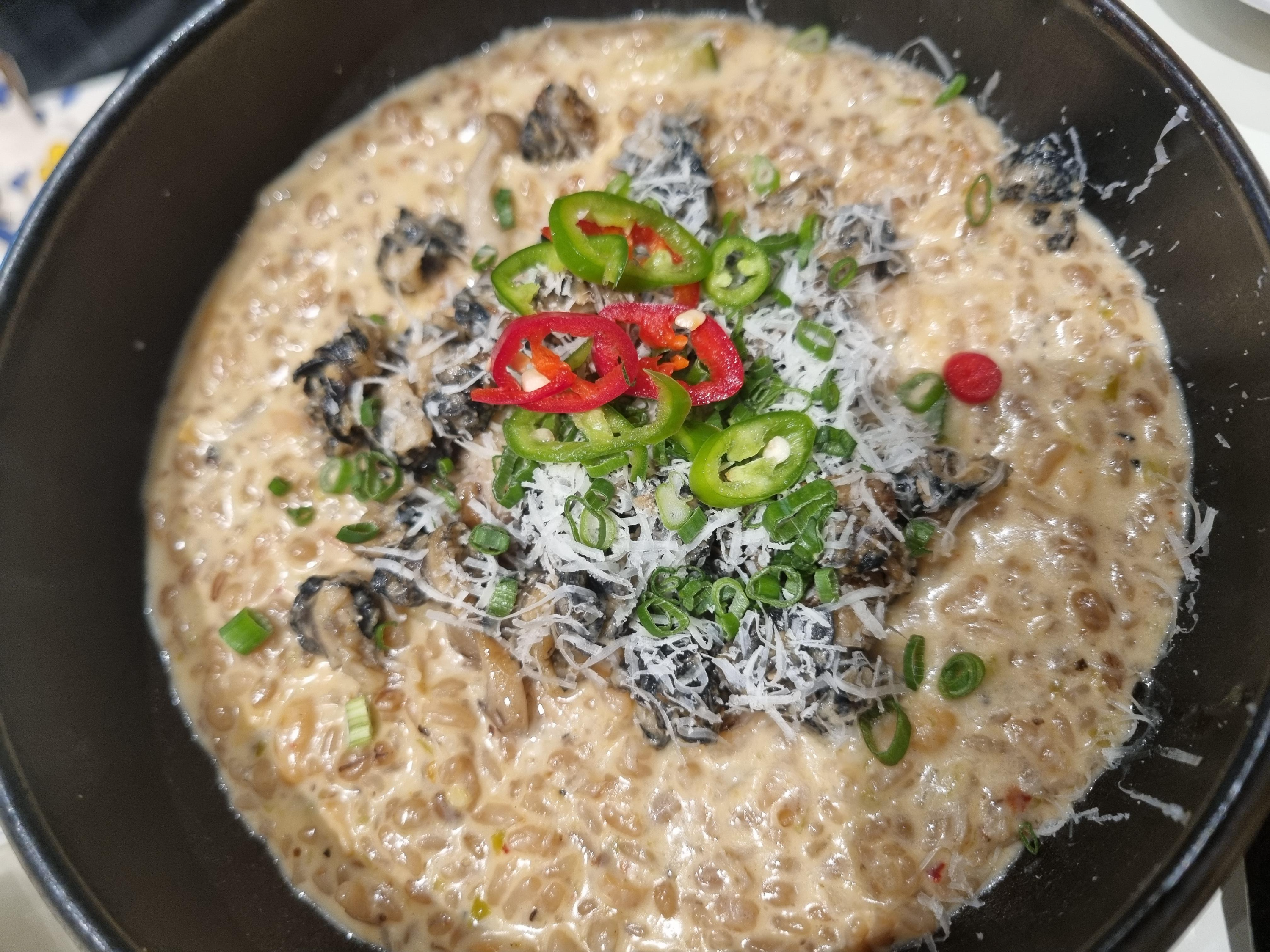 저는 입맛에 맞았어요. 다른 메뉴에 비해 간이 셌고 청국장의 콩 같은 느낌의 된장도 씹혔어요. 묘하게 크림 리조또인데 한식인 것 같은 맛입니다.