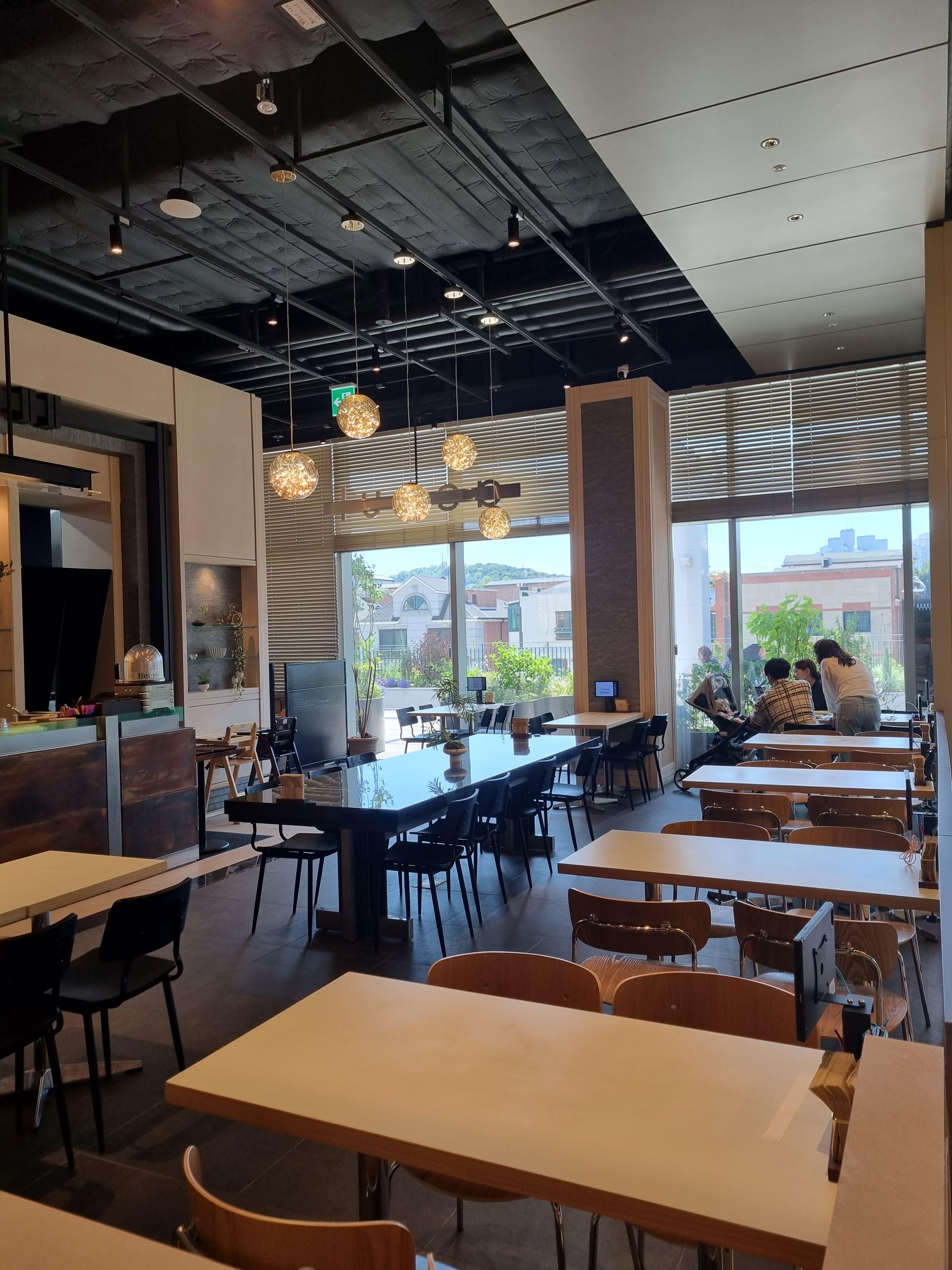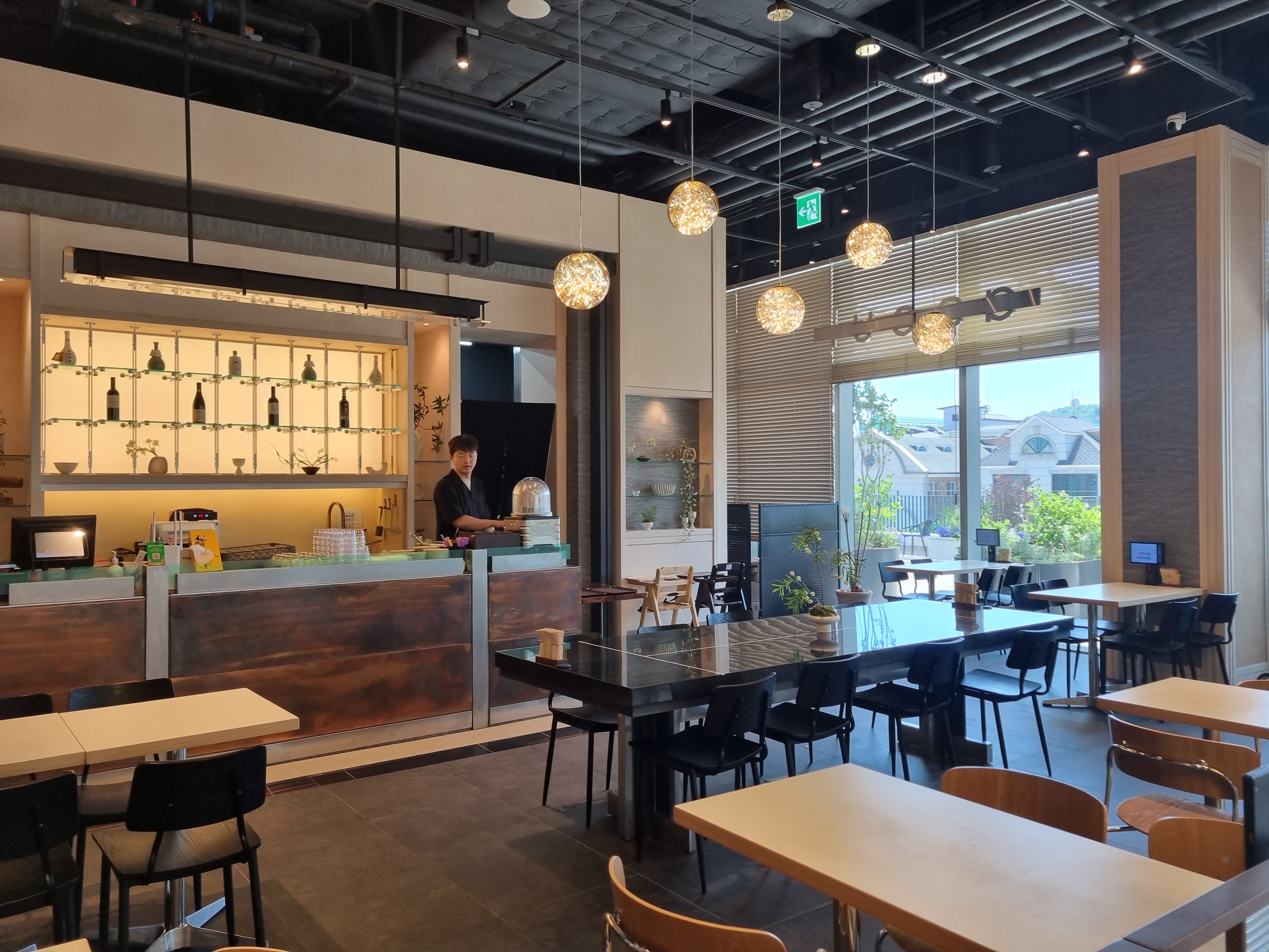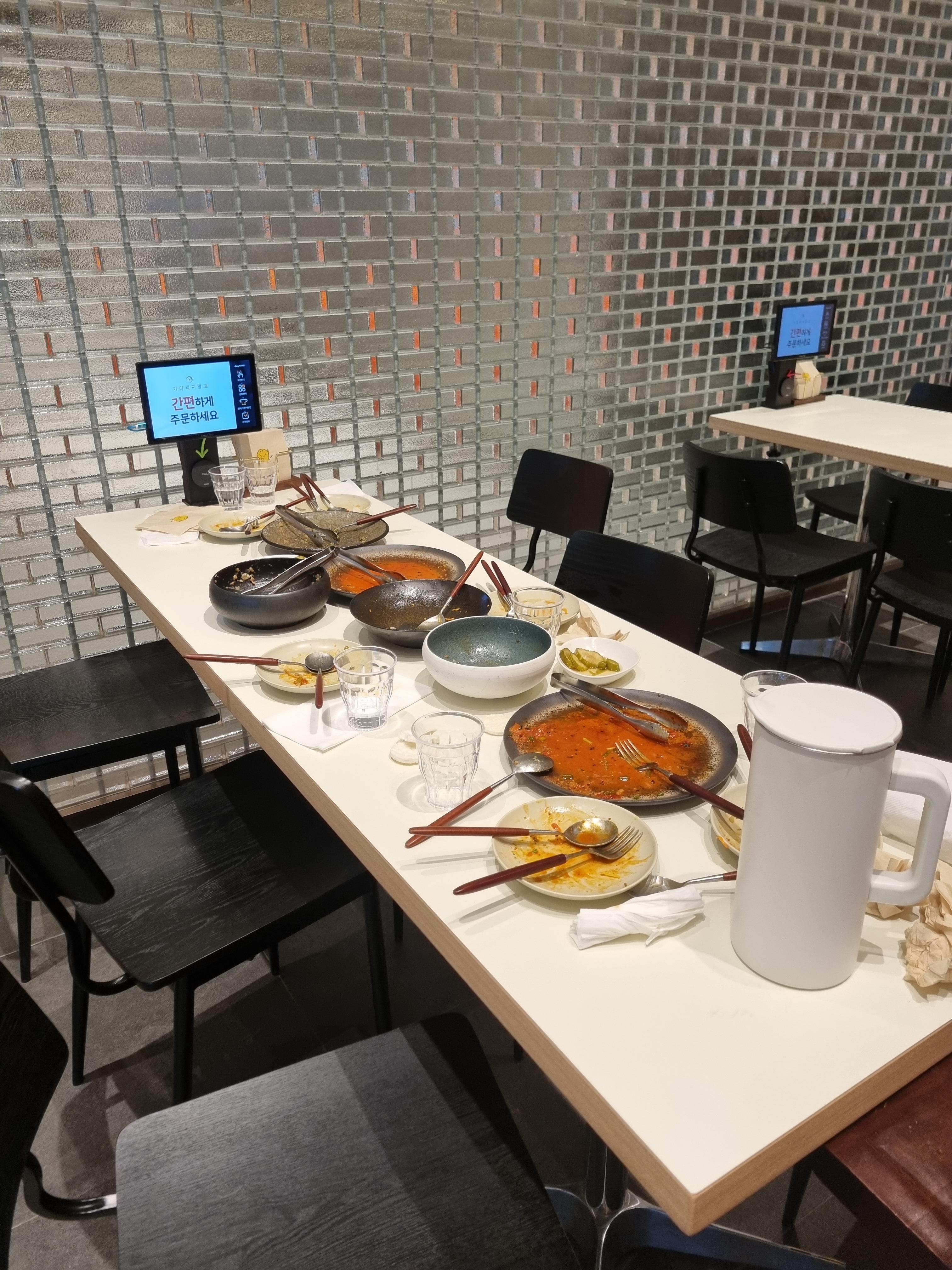 식당 가운데 자리 잡은 대형테이블이에요. 널찍하죠. 제가 식사한 곳은 아니지만 아기들하고 오신 분들도 편하게 식사하더라고요. 저는 측면에 있는 6인석에 앉았는데 여섯 명이 앉아서 먹기에 비좁지 않았어요. 괜찮더라고요.