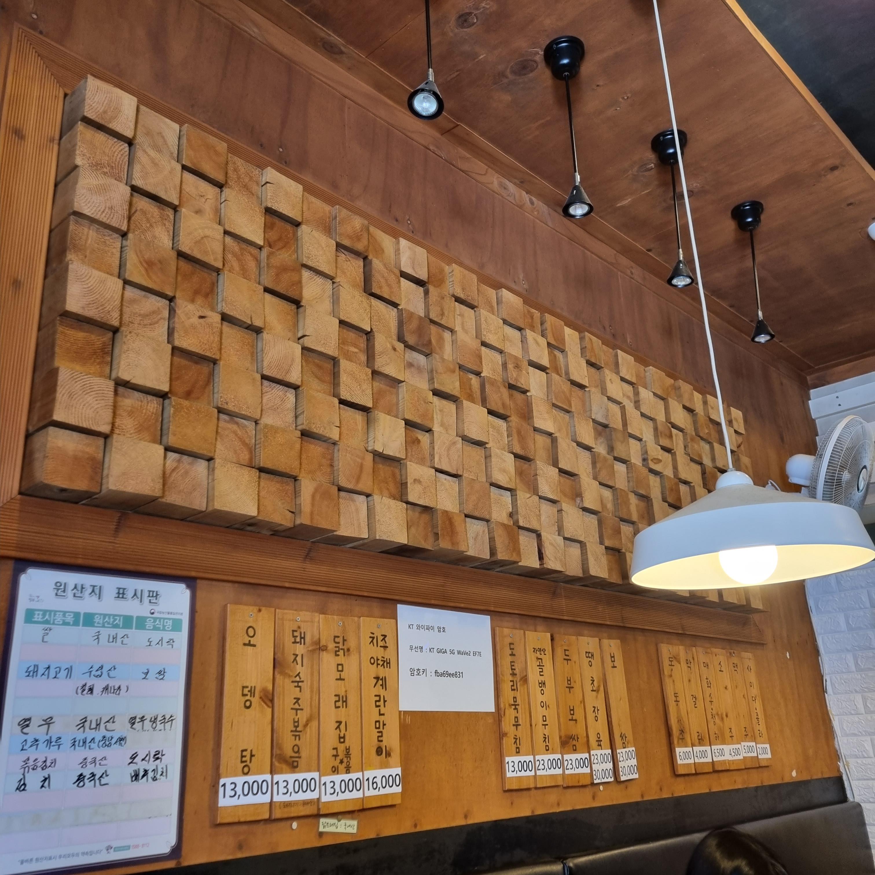 식당에서 벽에 붙은 메뉴를 보면서 느낀 점은 저녁에 온다면 메뉴 선택이 더 다양해질 것 같다는 것입니다. 안주거리가 참 많은데 주류도 같이 판매합니다. 국수보다 관심이 가는 안주 메뉴가 더 많습니다.
