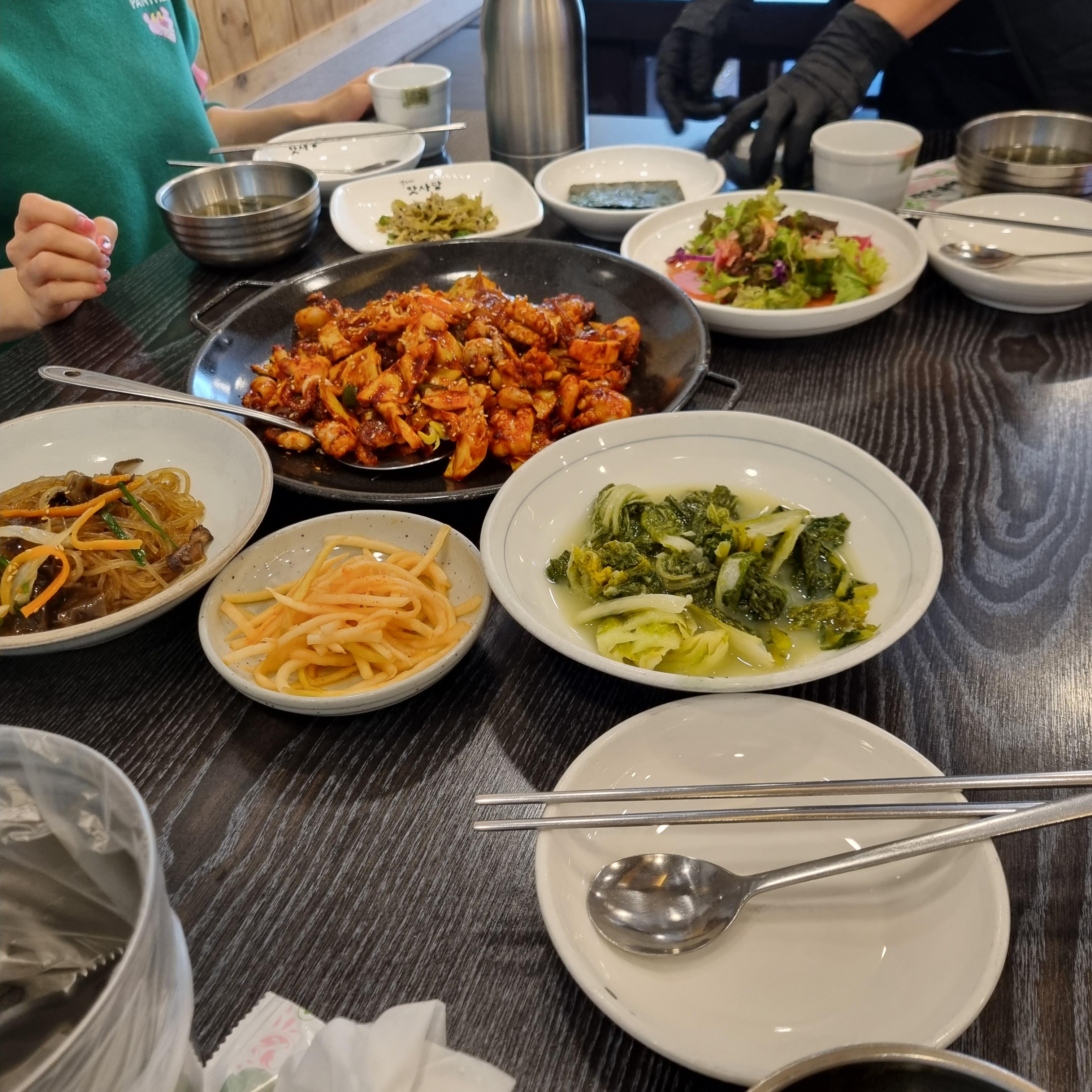 메인메뉴 말고 나오는 반찬 맛있습니다. 반찬이 골고루 나옵니다. 잡채랑 샐러드, 무생채, 김치도 나왔고 미역국은 개인별로 다 주셨어요. 다른 글을 보니 그 밖의 반찬은 매번 바뀔 것도 같습니다만 다양한 반찬을 같이 주시니 한식 한 상 제대로 먹는 느낌이 납니다. 리필을 요청드리면 더 가져다주셨답니다. 매운맛 중화를 위해서 미역국도 리필했어요.