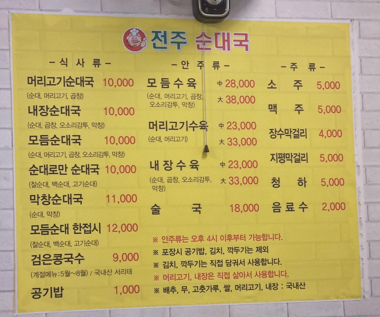 수원 정자시장 맛집으로 검색해 보면 많은 집이 나오진 않아요. 짱치킨, 아들네닭강정, 족발집 몇 군데, 만두와 찐빵 파는 곳, 국탕 파는 집, 네이버에서 예약되는 테이크아웃전용 돈가스집... 그리고 순대국집으로는 전주순대국이 나온답니다. 지나가다 보면 늘 손님들이 있더라고요.