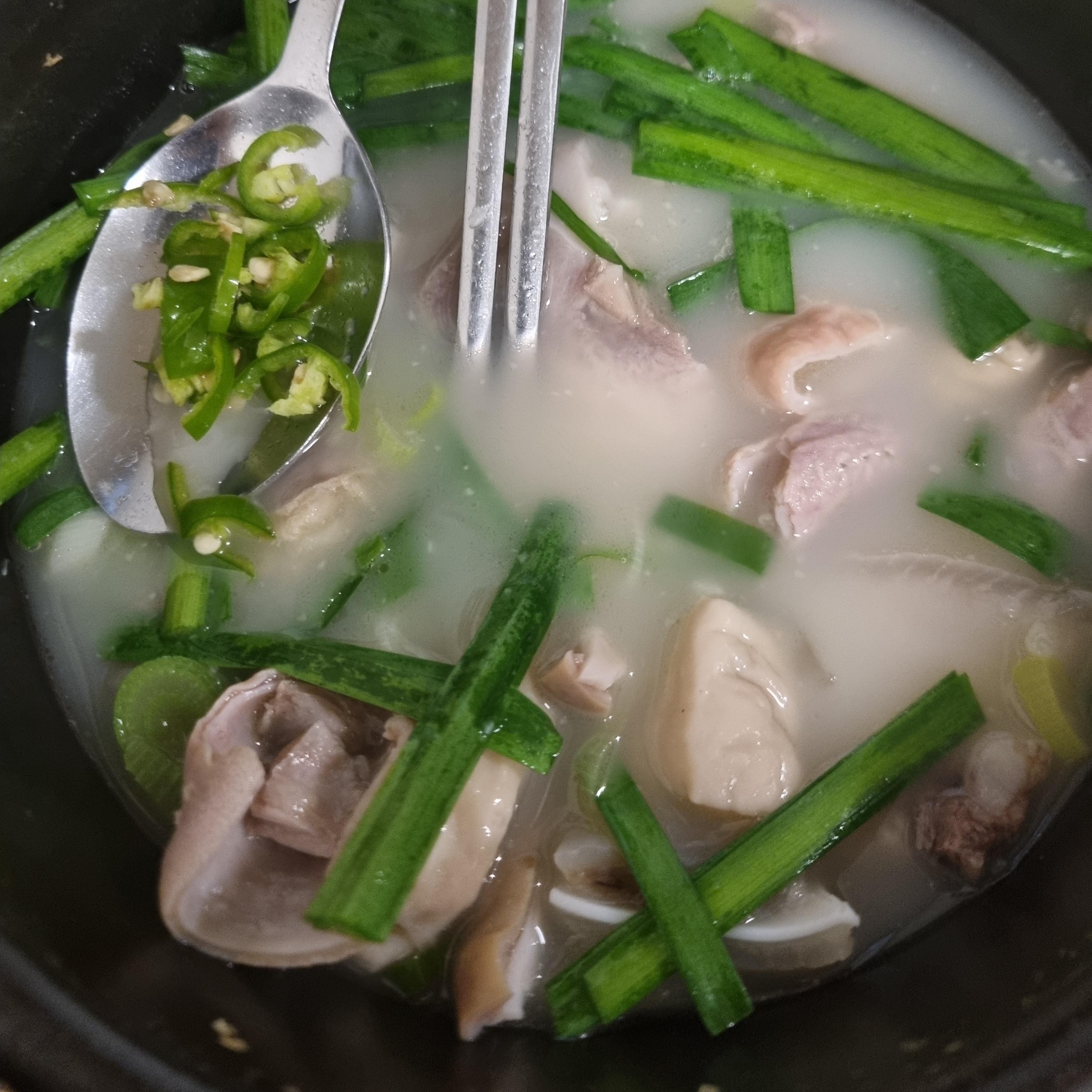 저는 모듬순대국에는 청양고추 조금이랑 부추를 넣었습니다. 저는 잡내가 거의 안나고 국물도 기름지지 않고 깔끔했어요. 육수는 가볍지만 진국 같은 끈적한 느낌도 살짝 들었습니다.