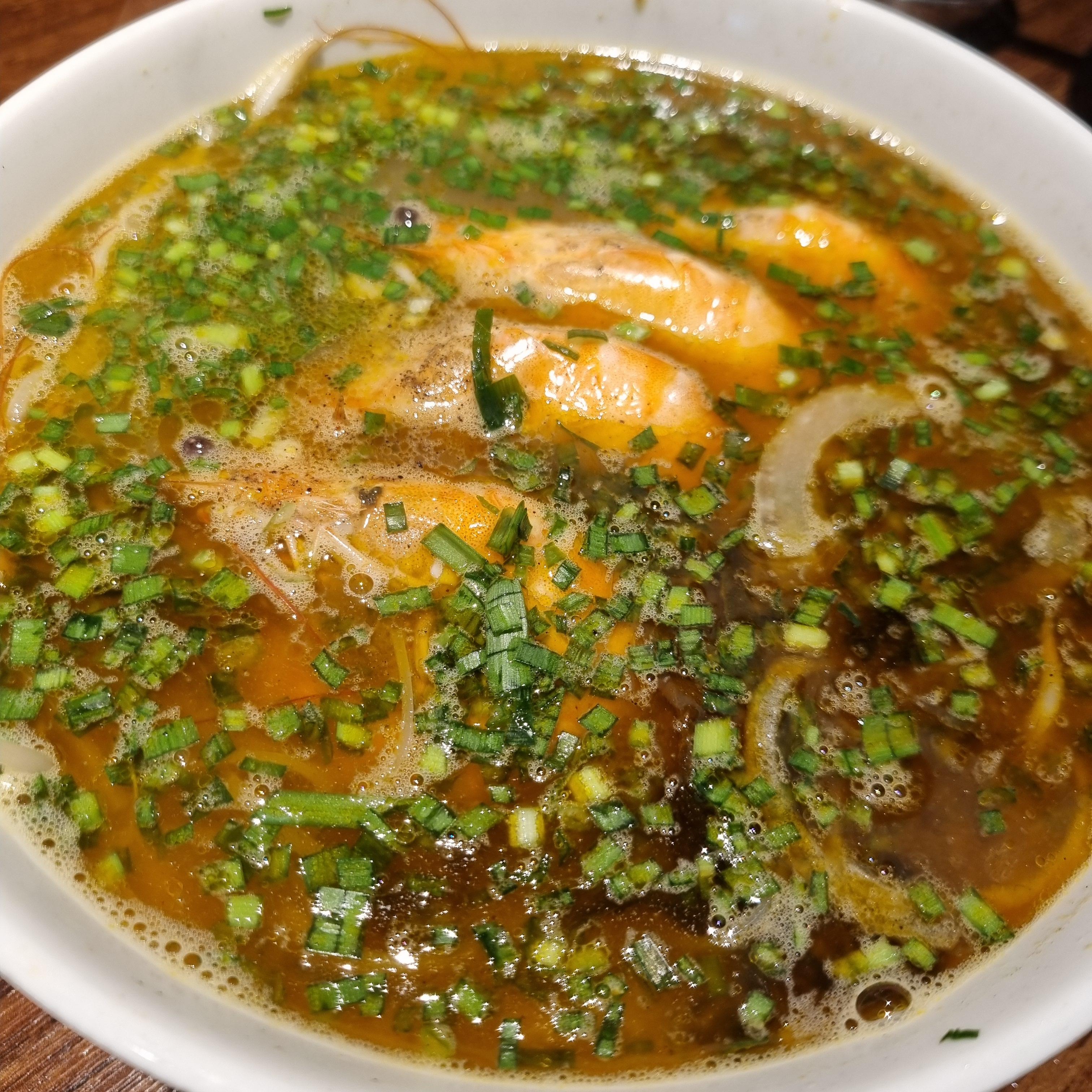 새우탕 쌀국수입니다. 같이 식사한 분이 드셨는데 비닐장갑과 빈 접시 하나가 같이 나옵니다. 쌀국수 받으면 제공해 주신 비닐장갑 끼고 새우살을 벗길 수 있었습니다. 그런데 새우가 많이 뜨거우니 껍질 벗길 때 조심해야 합니다. 조금 수고스럽지만 껍질을 까면 새우가 나타납니다. 맛있게 드셨다고 후기를 남겨 주셨습니다. 하지만 번거로워서 다음에는 안 드시겠다고 하셨답니다.