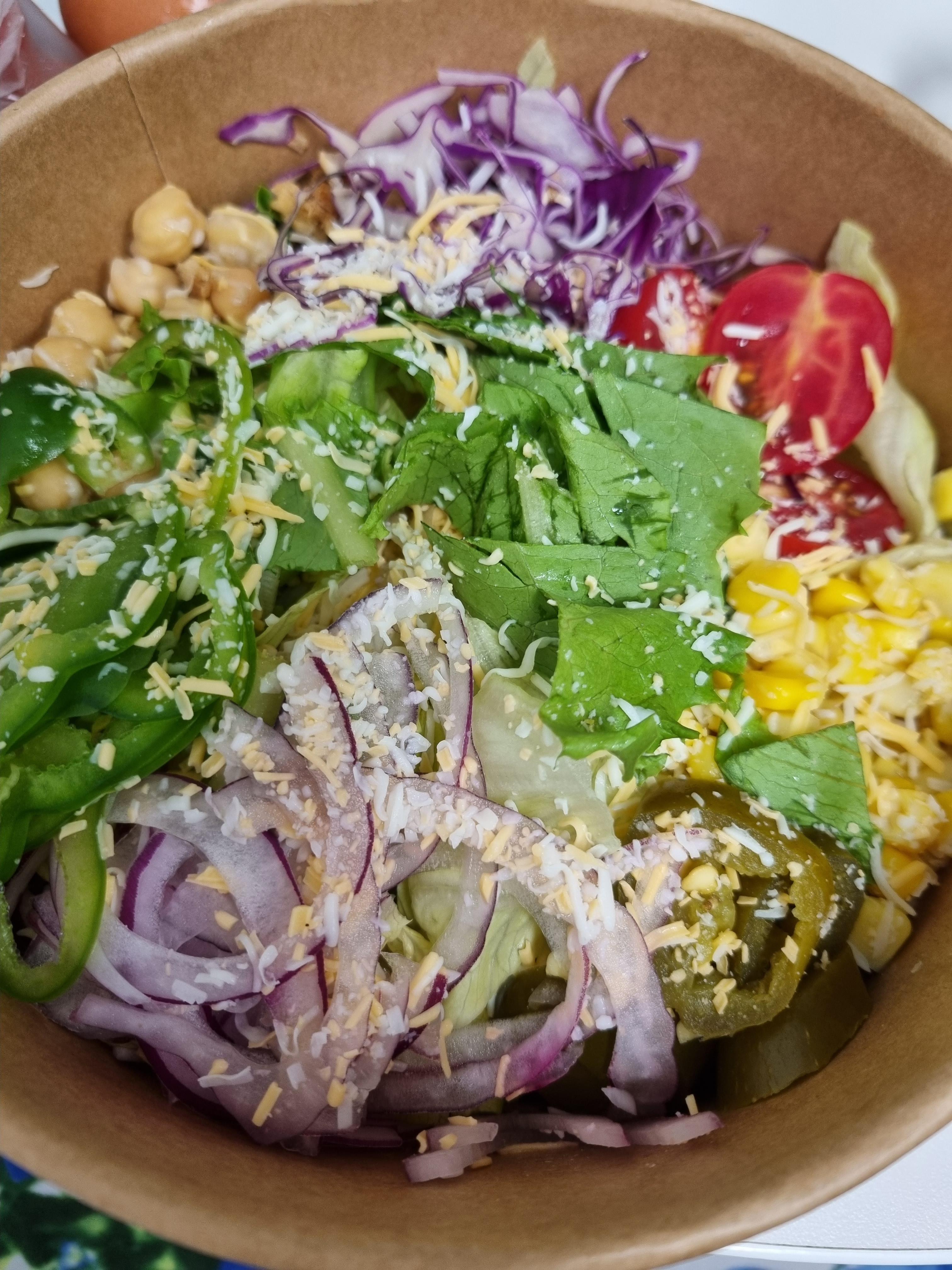 베지 샐러드는 다음날 점심으로 미리 주문했어요. 배달받은 상태로 하루 냉장보관 했어요. 야채 컨디션이 좋지요? 소스도 별도로 작은 용기에 담아주니 하루정돈 보관해도 문제가 없었습니다. 제가 좋아하는 토핑을 준비해서 같이 먹었어요.