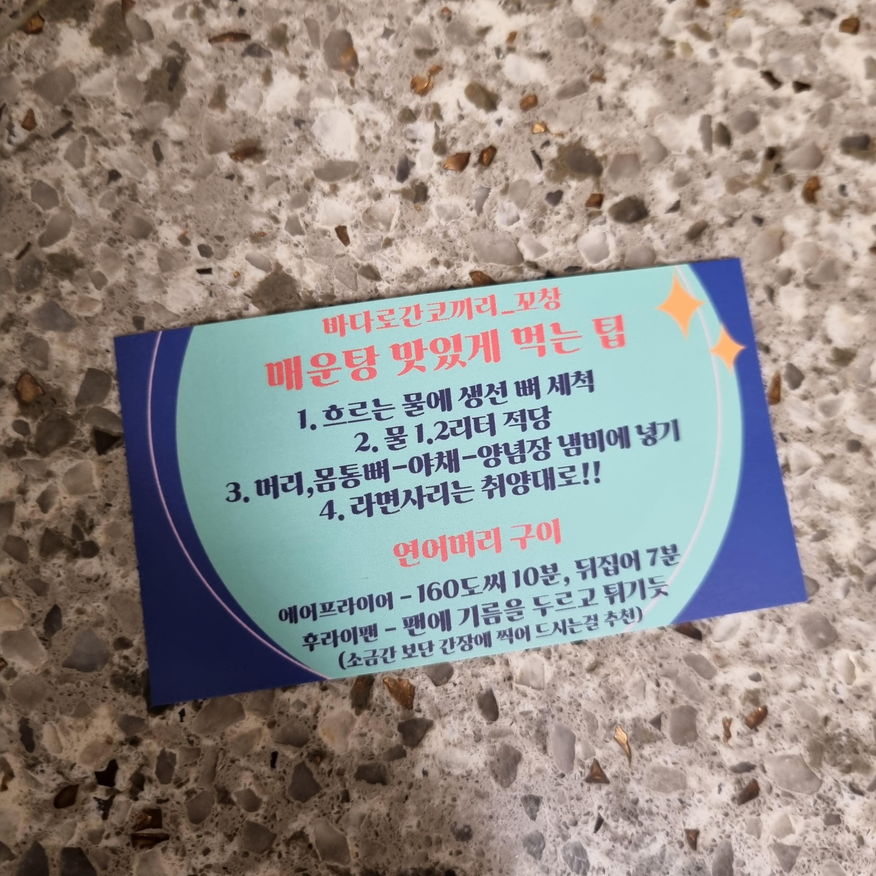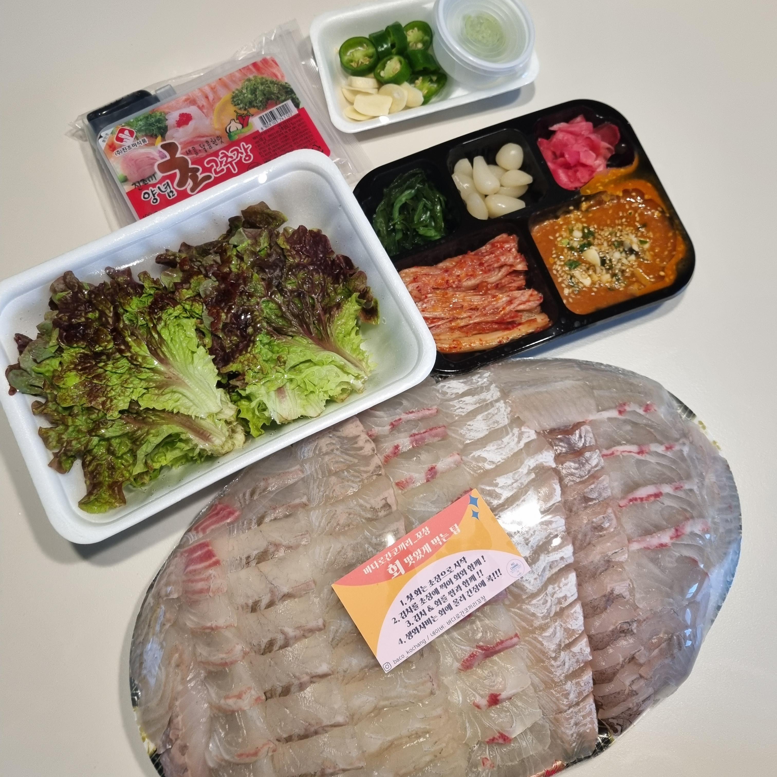 매운탕 서더리나 구이용 연어머리도 예약할 수 있습니다. 지난번에 서더리 먹어봤는데 깔끔하게 재료를 포장해 주셨습니다. 사진처럼 매운탕 맛있게 먹는 팁을 안내해 주셔서 안내에 따라 조리해서 먹으면 간편합니다. 매운탕도 맛있게 먹었던 기억이 있습니다. 이번에는 중 사이즈를 2명이서 먹기에 양이 많아 매운탕을 따로 주문하지 않았습니다. 정말 배부르게 먹을 수 있었습니다. 그리고 최근에는 모둠회 구성에 연어가 없어서 연어머리는 예약할 수 없는 것 같습니다.