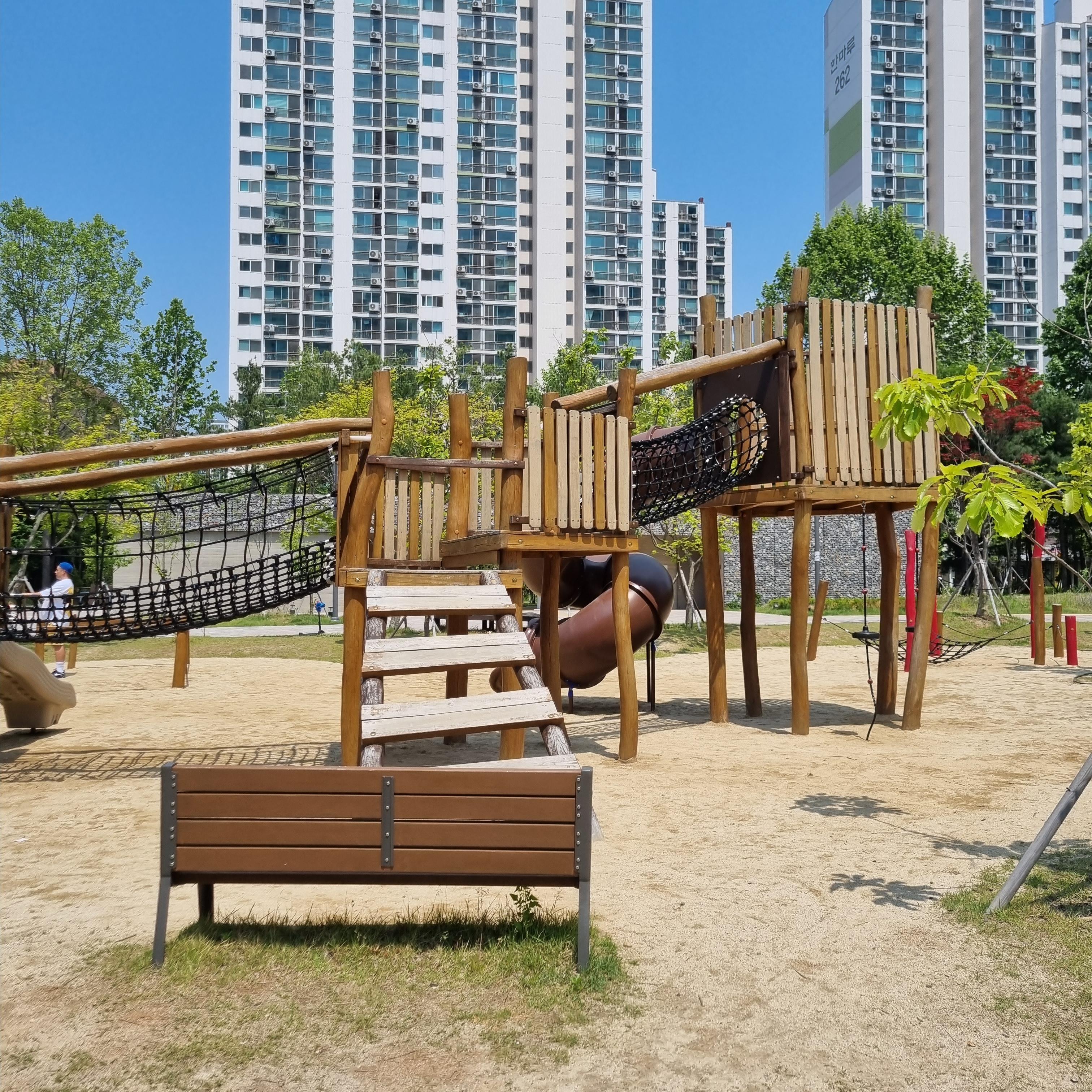 놀이터에는 미끄럼틀, 그네를 비롯하여 여러 가지 놀이기구가 있습니다. 아이들이 놀이터에 와서 모래놀이도 하고 놀이기구도 타며 노는 모습을 자주 볼 수 있습니다. 놀이터 이용시간이 계절마다 다릅니다. 하절기 오후 6시까지, 동절기 오후 5시까지인데 실제로는 이보다 더 늦게까지 노는 것 같습니다.