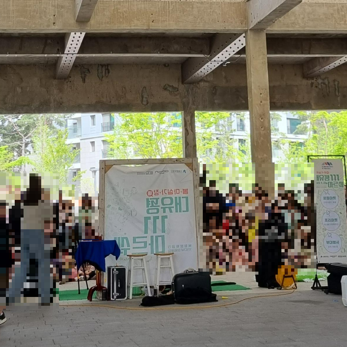 대유평공원에서는 문화행사도 누릴 수 있습니다. 111CM을 중심으로 건물 내부에서 각종 전시가 열립니다. 111CM이 휴무인 날을 제외하고는 항상 문이 열려있어서 건물 내에서 쉴 수도 있습니다. 긴 테이블과 의자가 세팅되어 있답니다. 외부와 맞닿은 111CM에서도 각종 행사가 열립니다. 23년 4월 말에는 벼룩시장도 열리고 각종 체험 부스, 마술쇼 공연도 해서 다녀왔답니다. 아이들이 바닥에 앉아 30분간 공연을 보며 집중했었지요. 그치고111CM에 입점했던 이학순 베이커리는 폐점하였습니다.