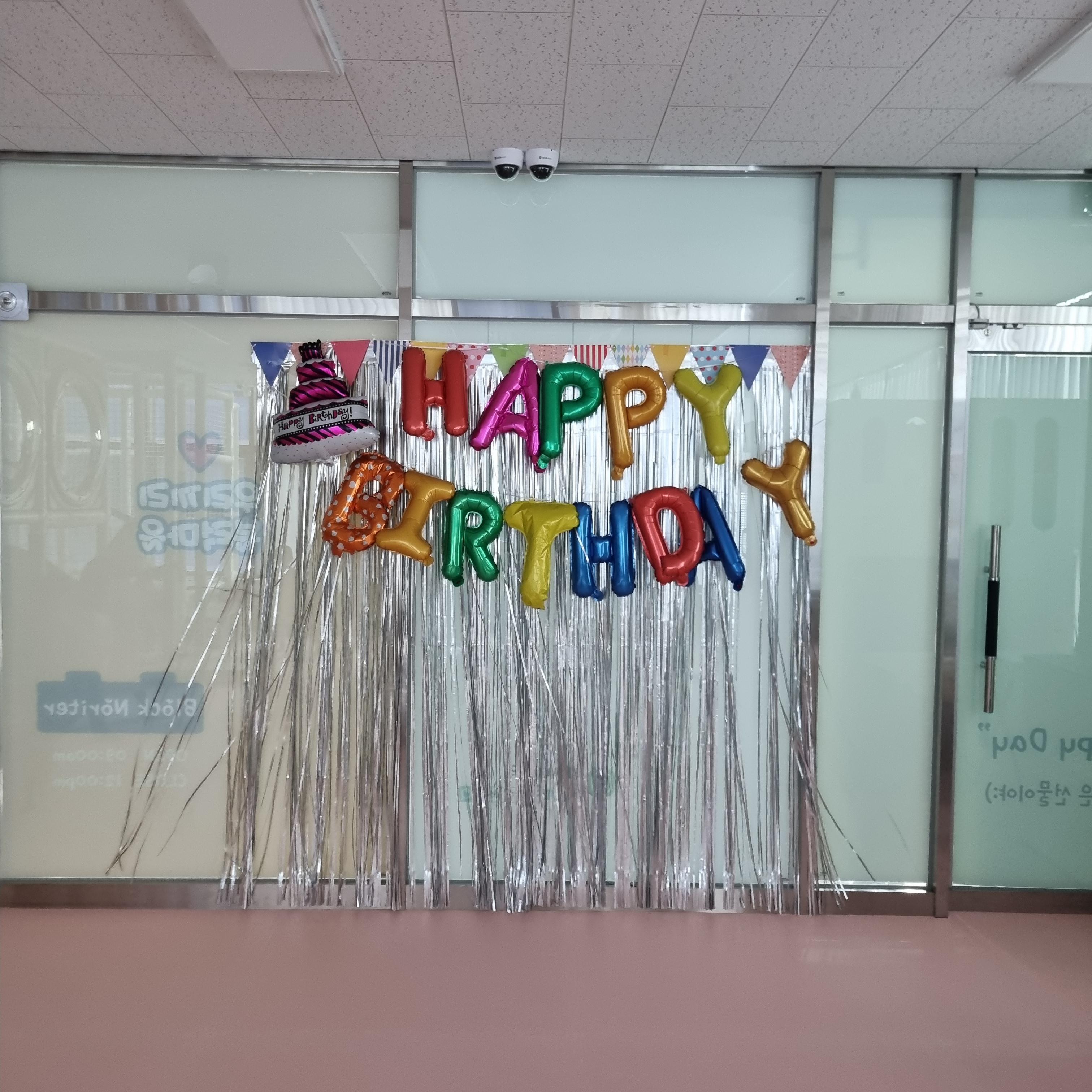 한쪽 벽면에는 Happy Birthday 풍선이 붙어 있습니다. 생일파티는 이곳에서 해도 좋을 것 같습니다.