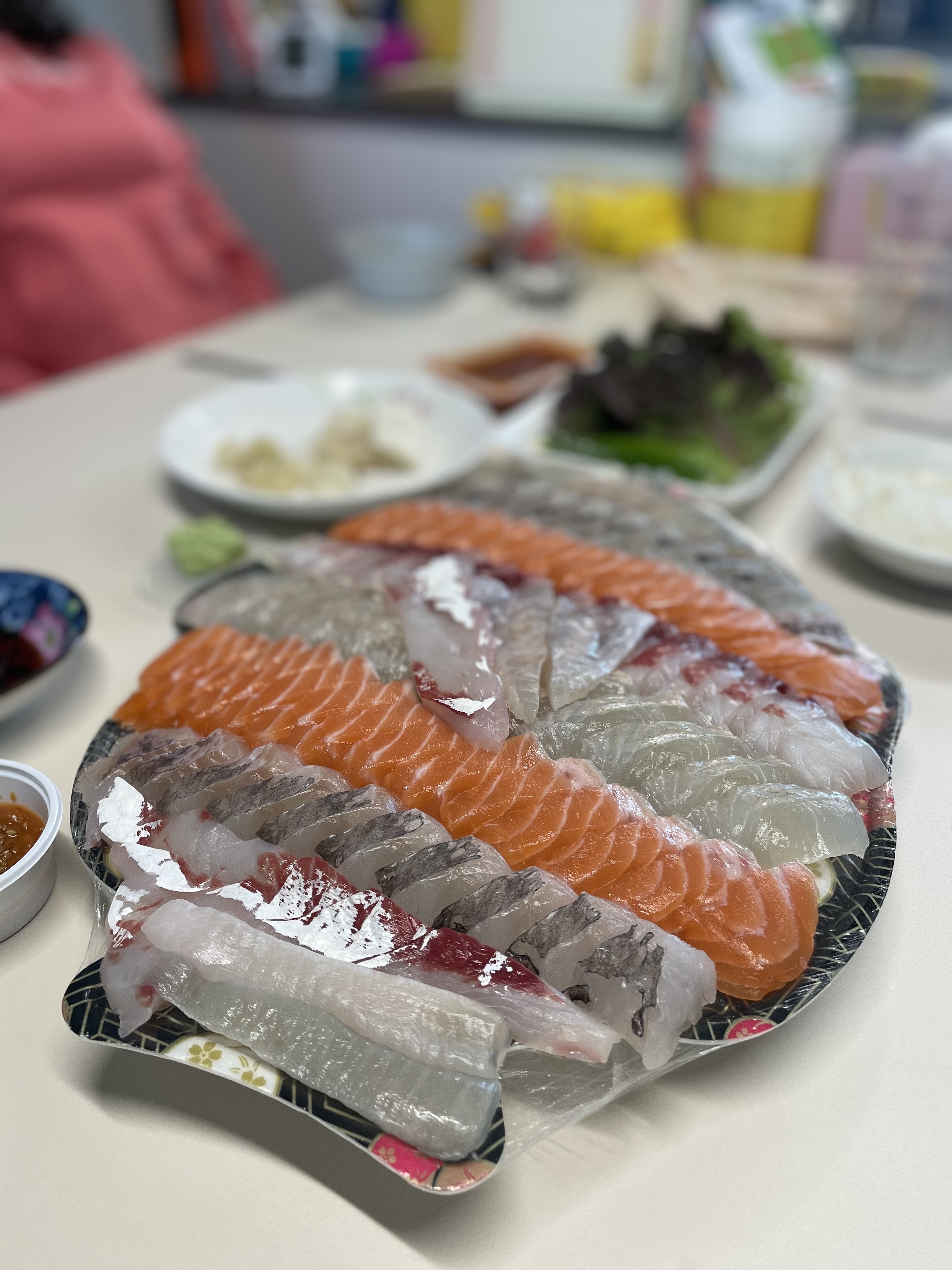 광어와 엔가와를 포함해 연어, 숭어, 돔으로 구성되었던 거 같습니다. 회 종류는 잘 모르거든요. 연어는 확실합니다. 무슨 생선인지 물어봤어야 했는데 그냥 왔습니다. 횟집에 따라서는 어떤 회로 구성되었는지 포장지에 안내가 있기도 한데 이 부분은 아쉬웠습니다.