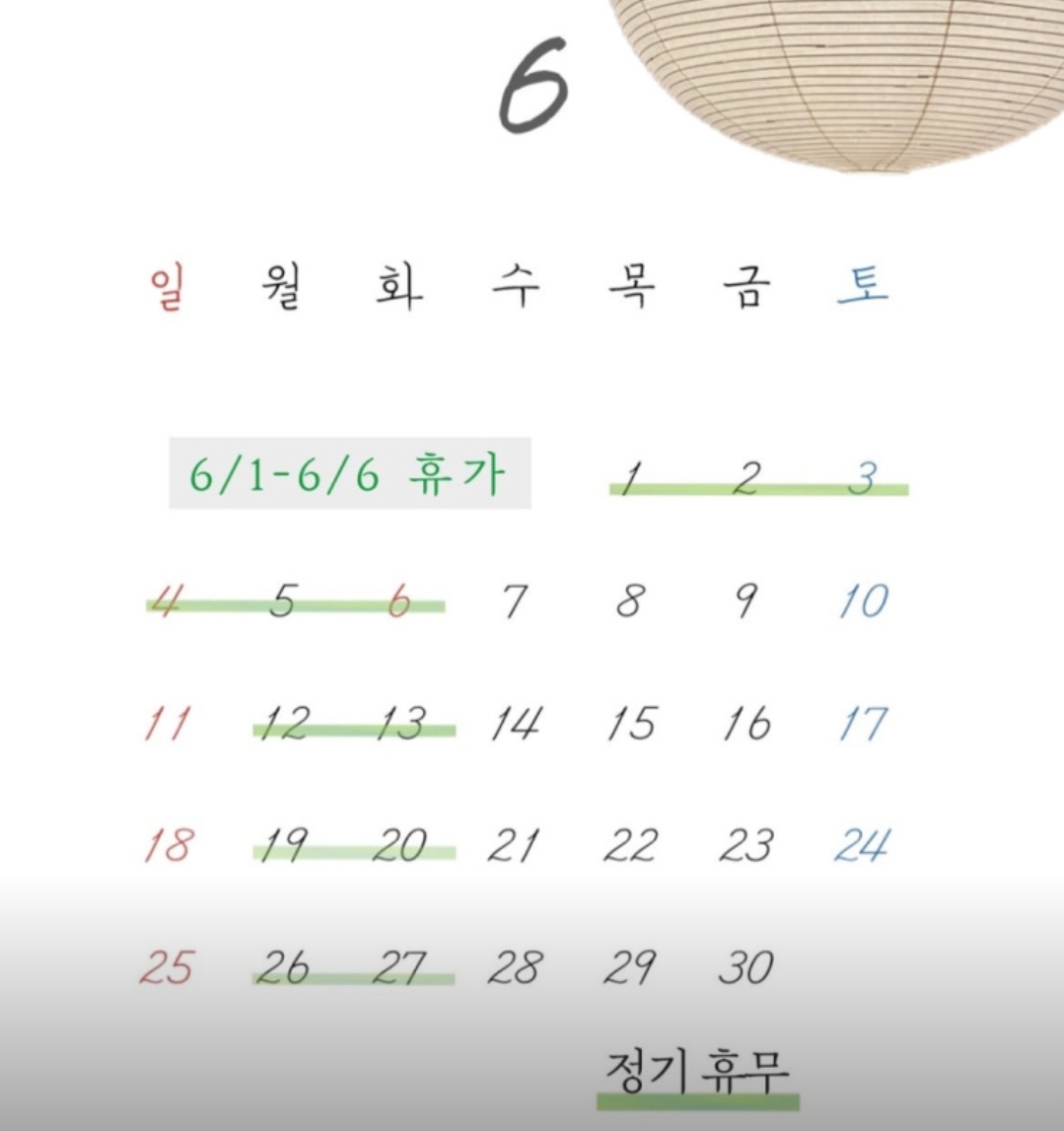 - 정기휴무 : 매주 월요일, 화요일