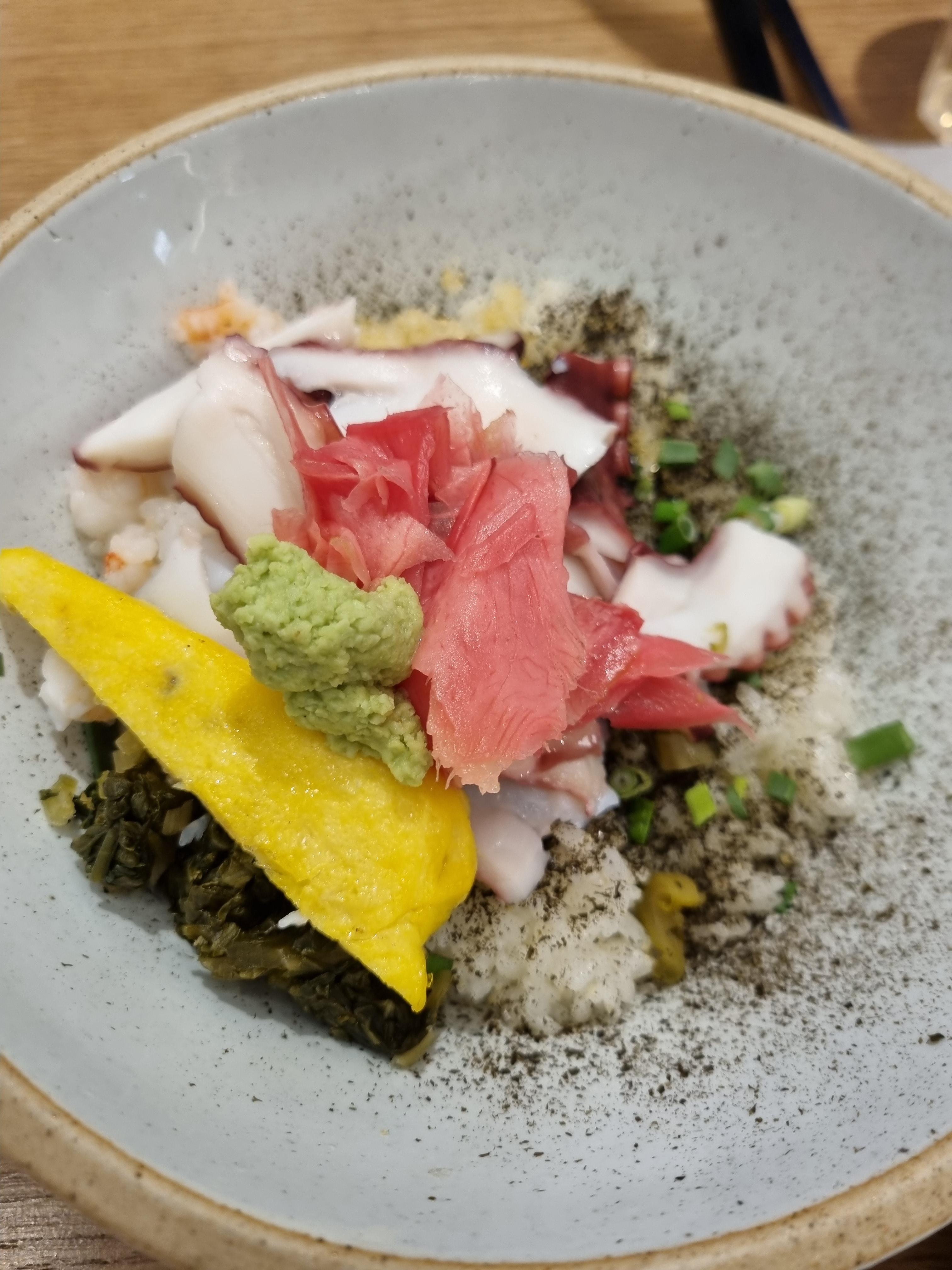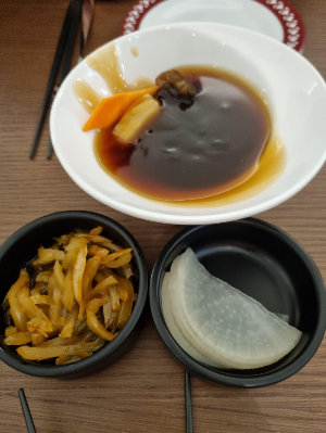 문어간장비빔밥 맛있습니다. 소갈비덮밥과 다른 느낌이에요. 생강초절임이 문어와 어울리지만 생각초절임을 좋아하지 않으신다면 빼고 드시거나 주문하지 않으시는 편이 나을 것 같습니다.