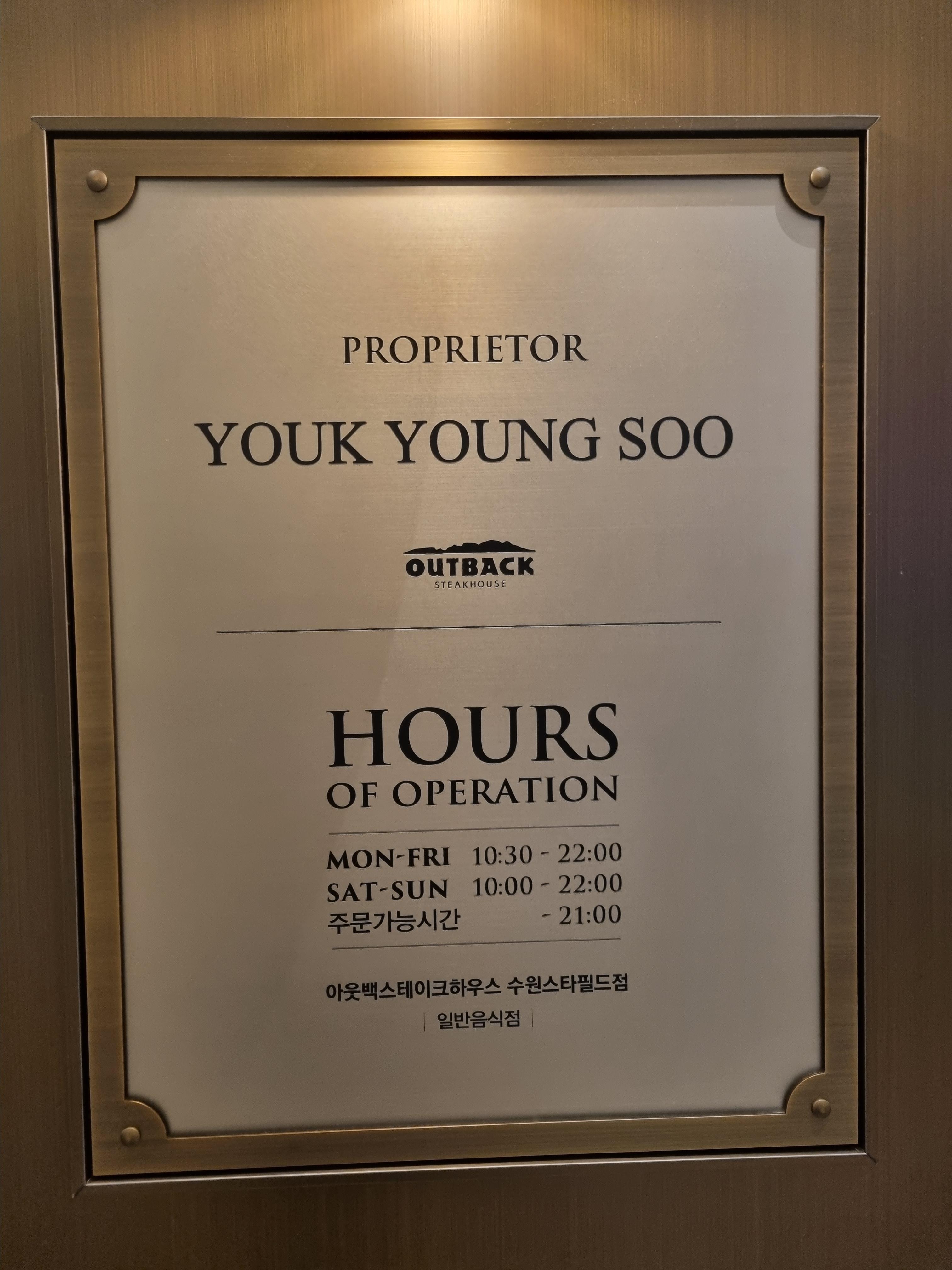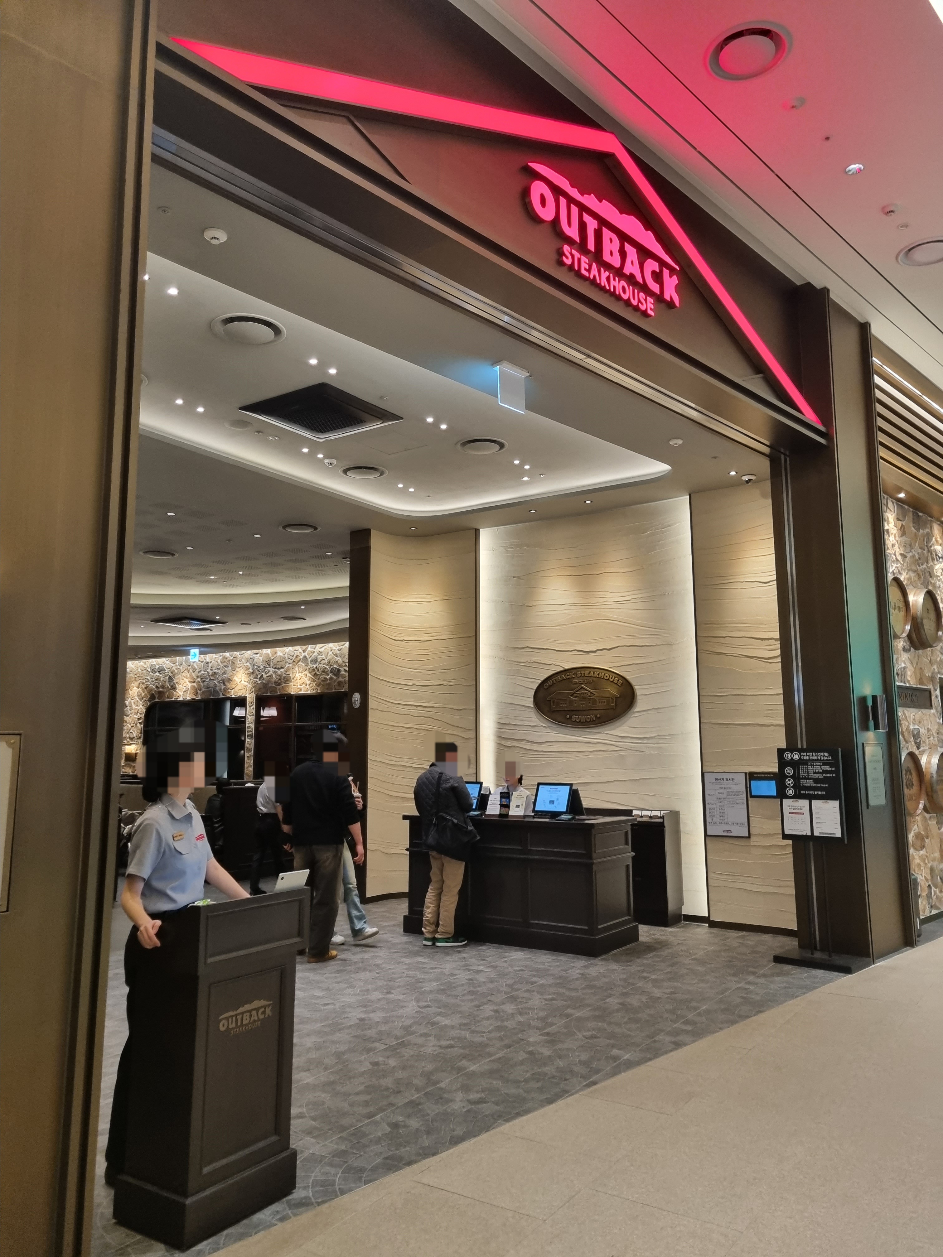 아웃백은 스타필드 수원점 7층에 위치해 있어요. 주변에 메가박스, 스몹, DODO, 별마당 근처예요. 주말에는 7층 식당가가 무척 붐비는데 평일 이른 저녁이라 그런지 붐비는 느낌은 전혀 없었어요.