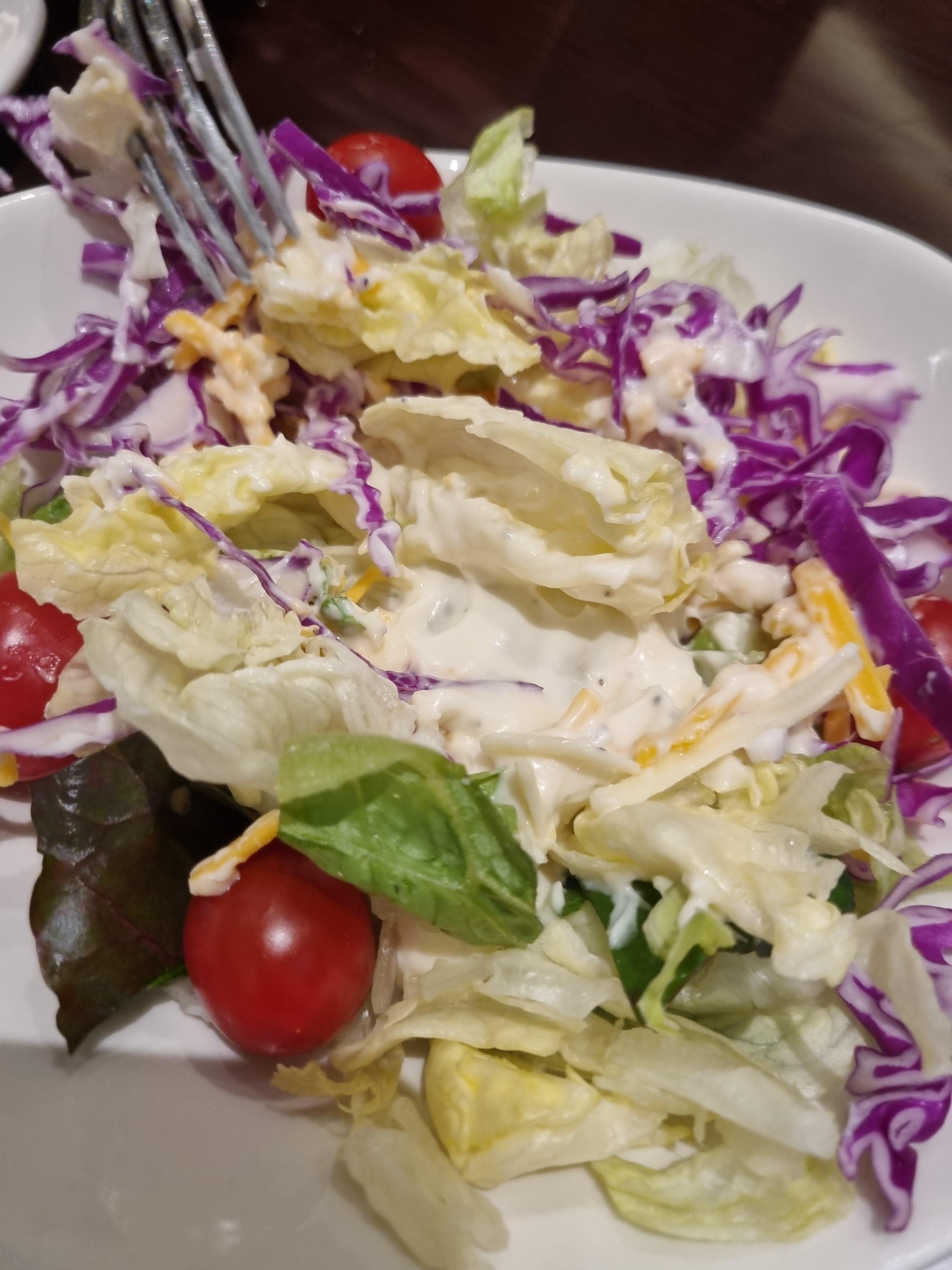다른 사이드는 샐러드로 선택하고 오늘은 치킨텐더를 추가하지 않았어요. 아웃백에서는 치킨텐더를 유상으로 추가해서 샐러드랑 같이 먹는 게 보편적이지요. 이번에는 블루치즈 소스를 선택해서 기본만 즐겼습니다.