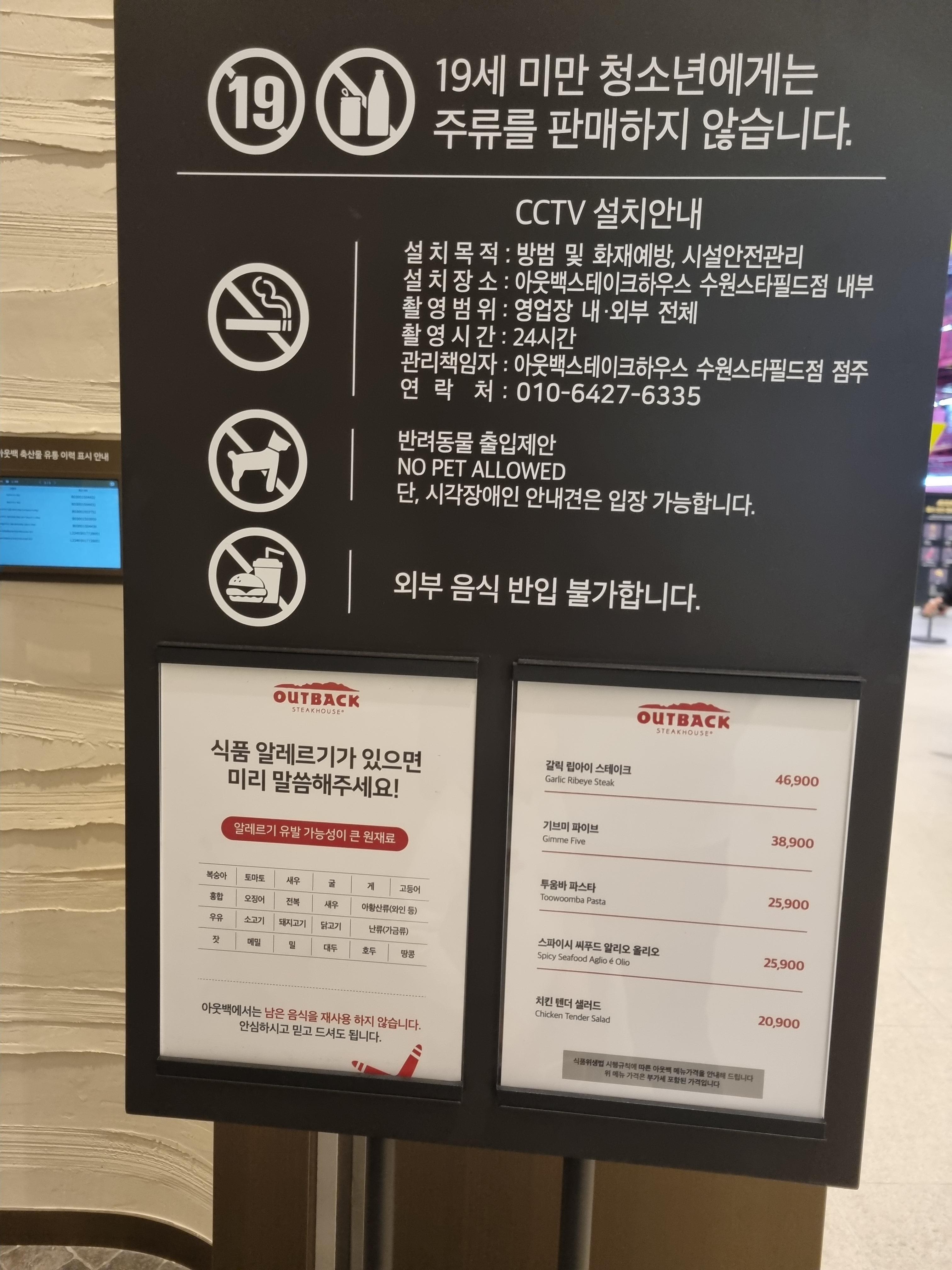 아웃백 수원스타필드점 예약 방문기