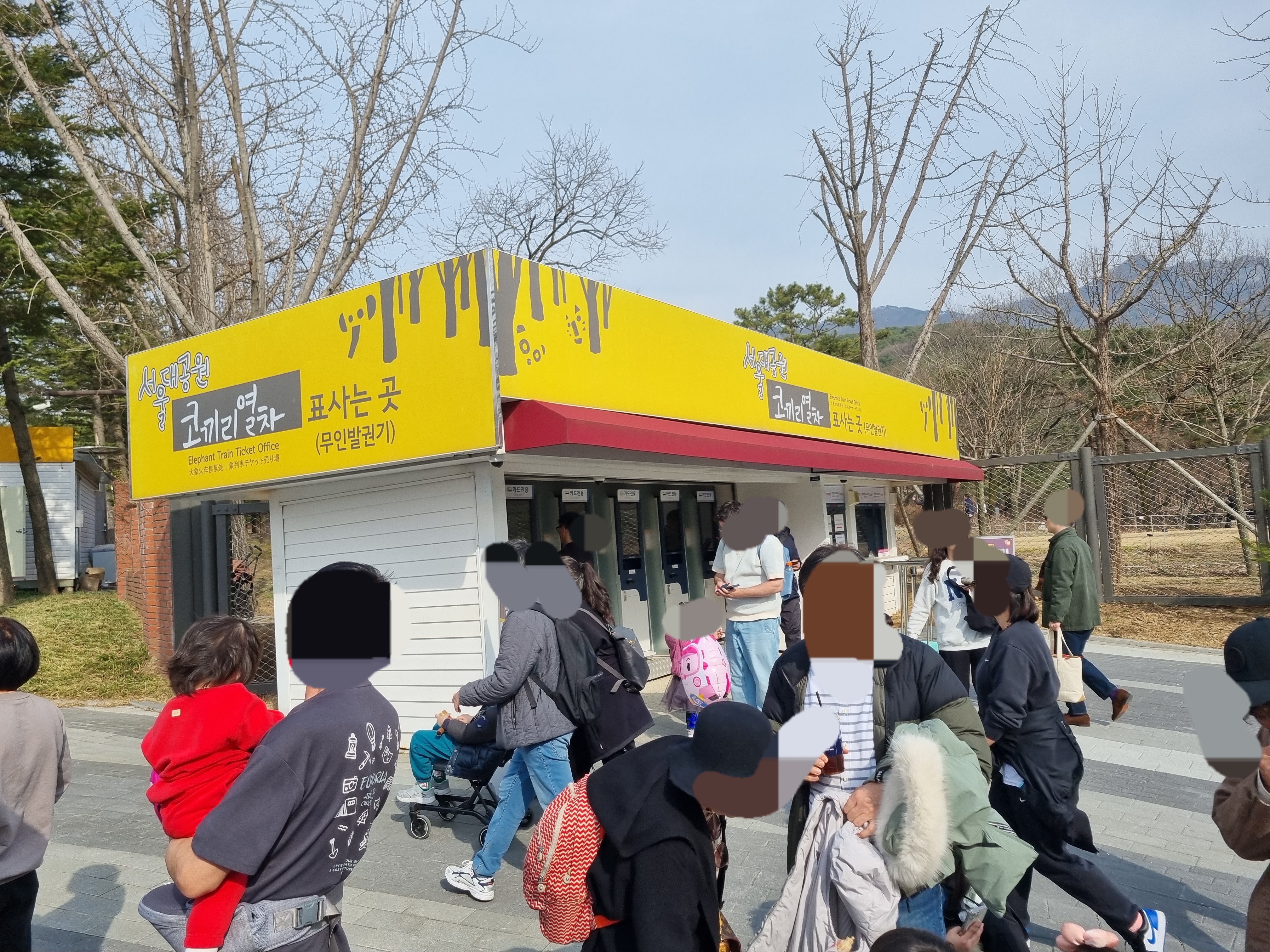 관람을 마치고 동물원을 나왔습니다. 이제 다시 줄을 서요! 도저히 걸어 나갈 수 없어서 코끼리열차 티켓을 다시 샀어요.