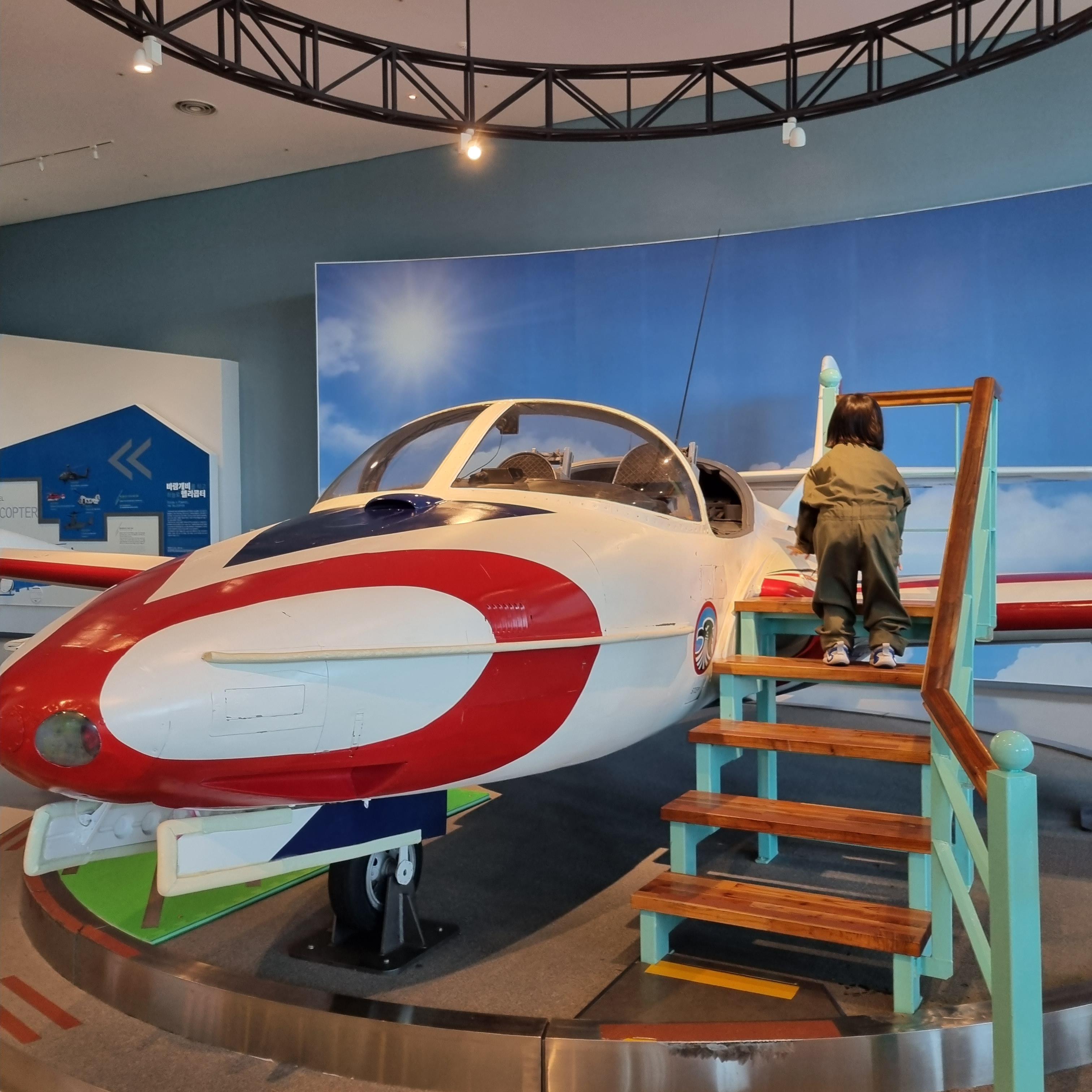 제주항공우주박물관에 입장을 하면 1층은 항공역사관으로 실물 비행기가 전시된 에어홀과 5개의 Zone이 있습니다. 각 Zone에는 항공의 역사부터 항공기술 등의 주제로 전시되고 있고, 아이들은 조종복을 입고 비행기에 앉아서 사진도 찍을 수 있습니다.