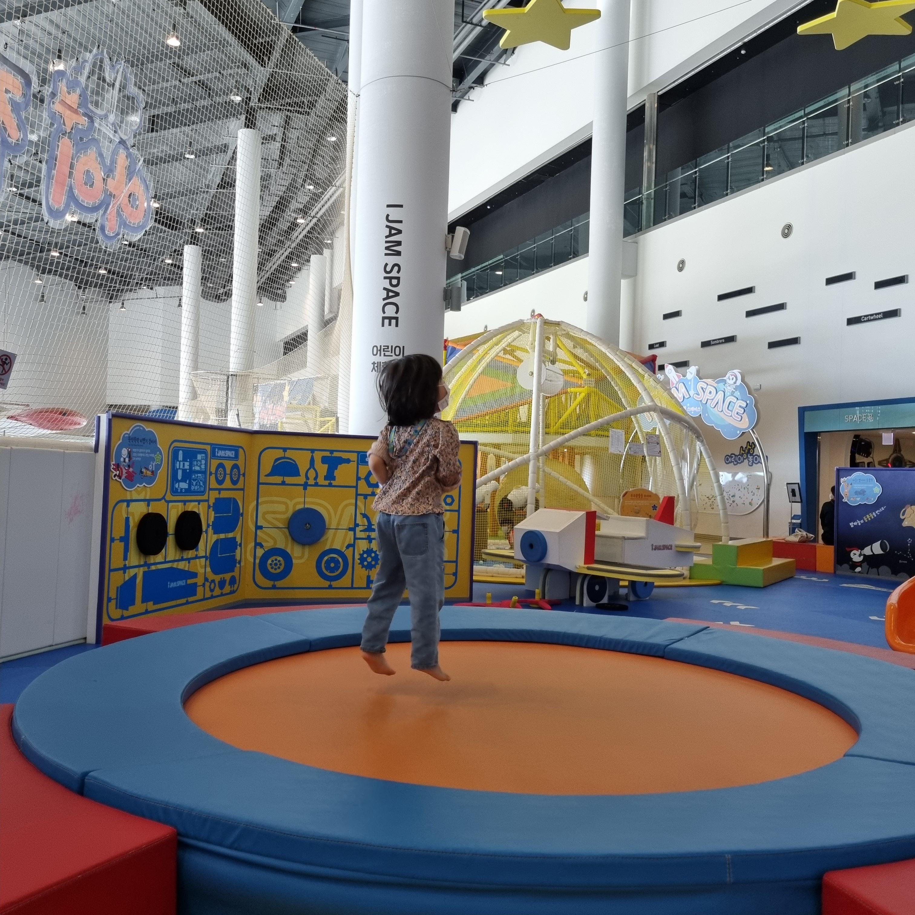아이 잼 스페이스는 우주를 주제로 꾸며 두었기 때문에 평소에 다니던 동네 키즈카페와는 다른 새로움이 있습니다. 미끄럼틀, 트럼폴린, 공 쏘기, 우주선과 같은 공간, 신체활동을 할 수 있는 장애물이 있는 공간, 블록놀이 등 다양하게 꾸며져 있습니다.