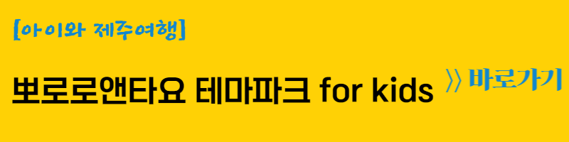 * 아이랑 함께 갈 만한 곳 : 뽀로로앤타요테마파크, 칠십리시공원 목재 놀이터, 아쿠아플라넷 제주, 제주항공우주박물관