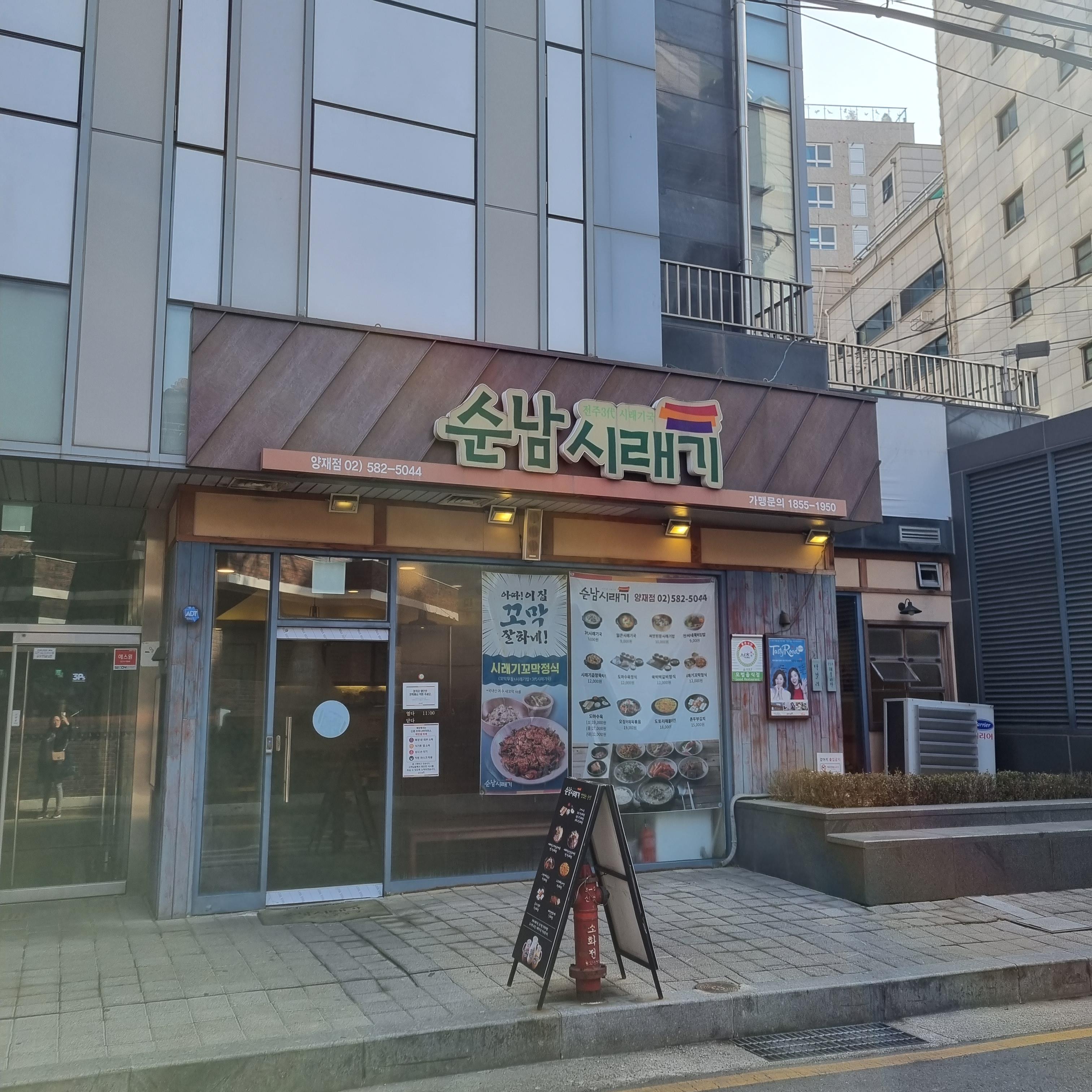 양재역 인근에서 일을 마쳤는데 어디서 밥을 먹을 지 고민이 되었습니다. 종종 샐러드, 햄버거, 순댓국을 먹기도 하고 카페에서 간단하게 샌드위치를 먹기도 했습니다. 소고기 파는 한정식 집도 있고 족발집에도 가보았네요. 하지만 이날은 저 혼자이고 배는 너무 고파 혼밥을 할 곳을 빨리 찾아야 했습니다. 그런데 한식이 먹고 싶습니다. 양재역 인근에는 패스트푸드를 파는 체인점도 많지만 가고 싶은 생각이 들지 않았습니다. 고민 끝에 한식을 푸짐하게 먹을 수 있는 곳인 순남시래기에 가기로 합니다.