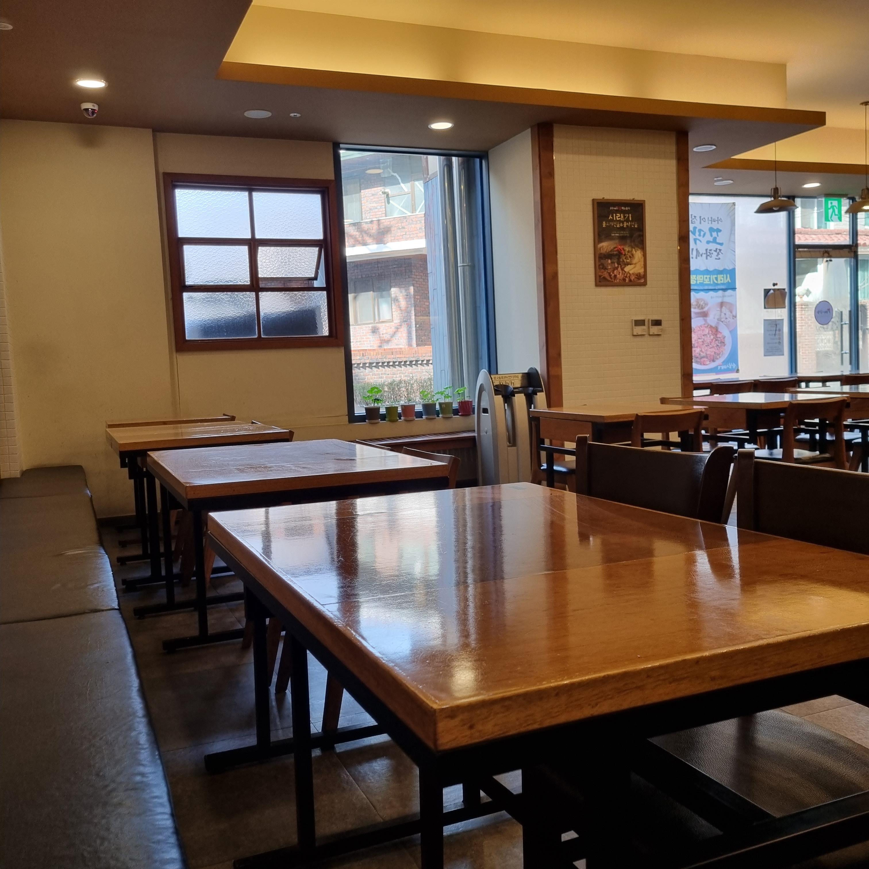 평일에 점심시간 피크 타임을 피해서 가보았습니다. 점심시간이 지나서 그런지 손님은 별로 없었습니다. 제가 다 먹고 나올 때쯤 손님이 없는 테이블을 찍어보았습니다. 사진에 찍히지 않은 우측 홀에도 테이블이 많이 있습니다.