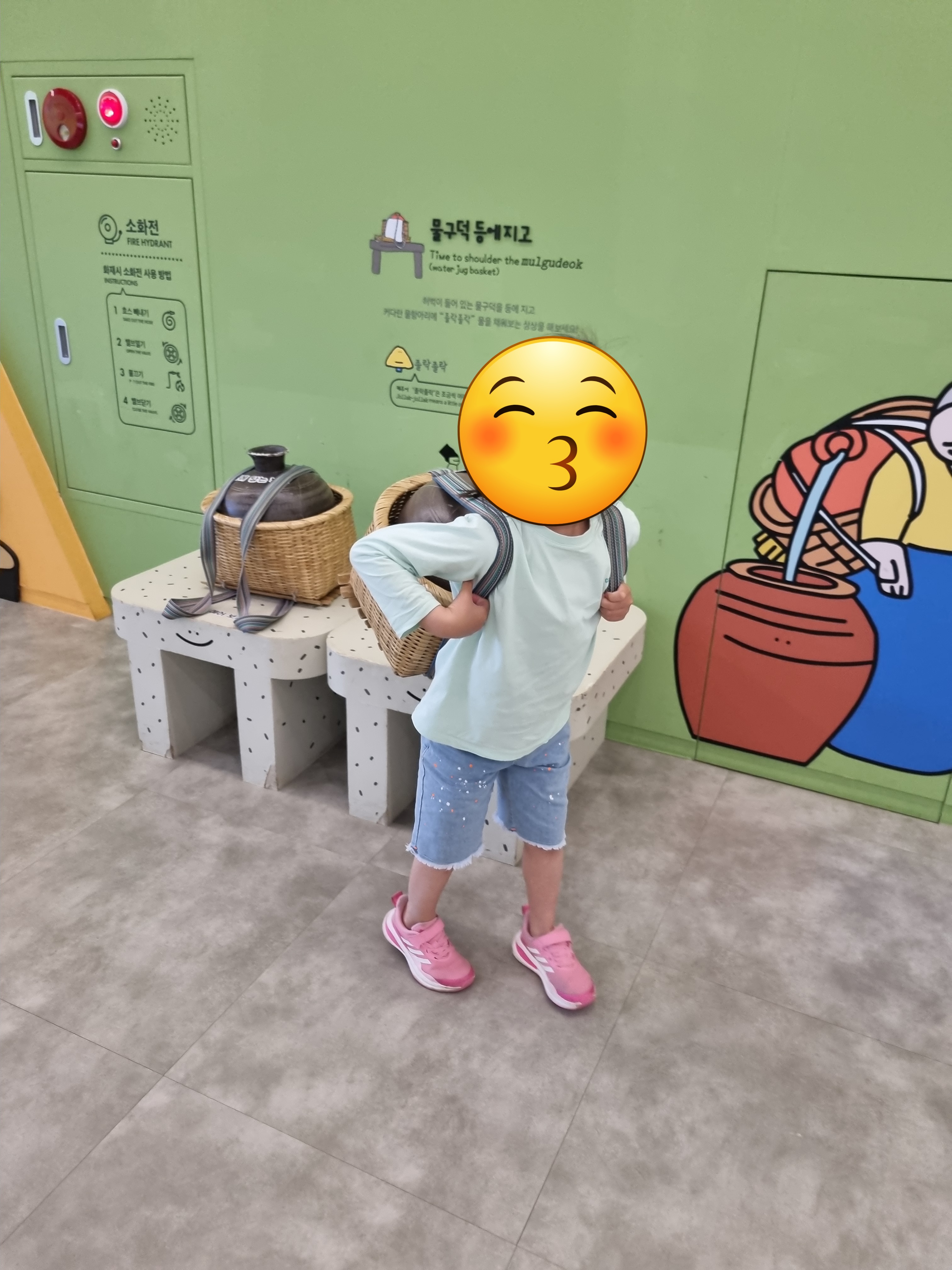 어린이박물관은 체험형 관람을 할 수 있는 곳이라 지루하지 않아요. 어린이들이 해볼 만한 것이 많아요. 물구덕도 등에 져봅니다. 돌을 옮기는 돌산태로 돌 모형도 옮겨봅니다. 저는 이런 건 처음 알게 됐어요.