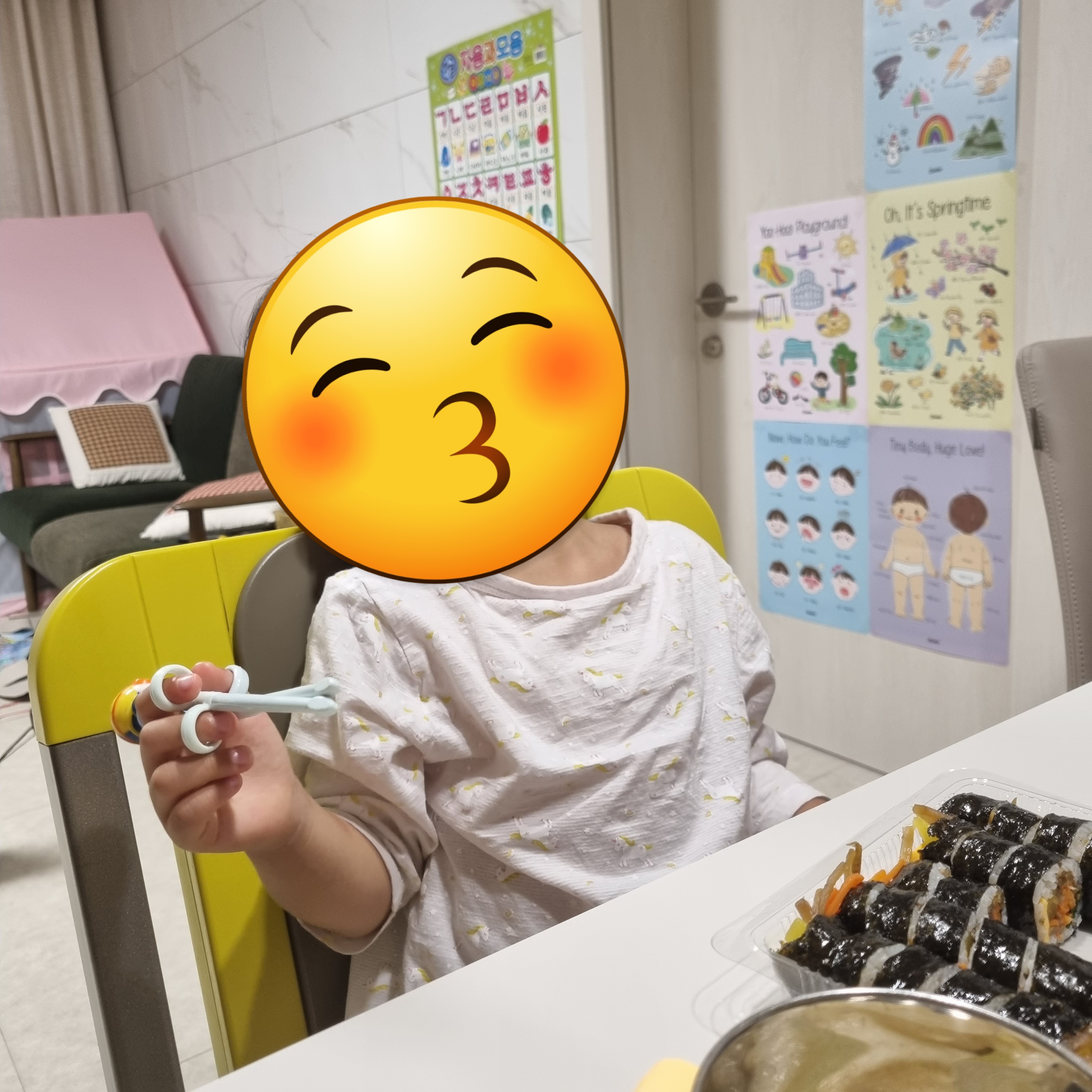 제가 여기서 김밥을 사서 먹이는 이유는 야채가 골고루 들어있기 때문이에요. 야채는 싫어하는데 김밥에 든 건 먹거든요.