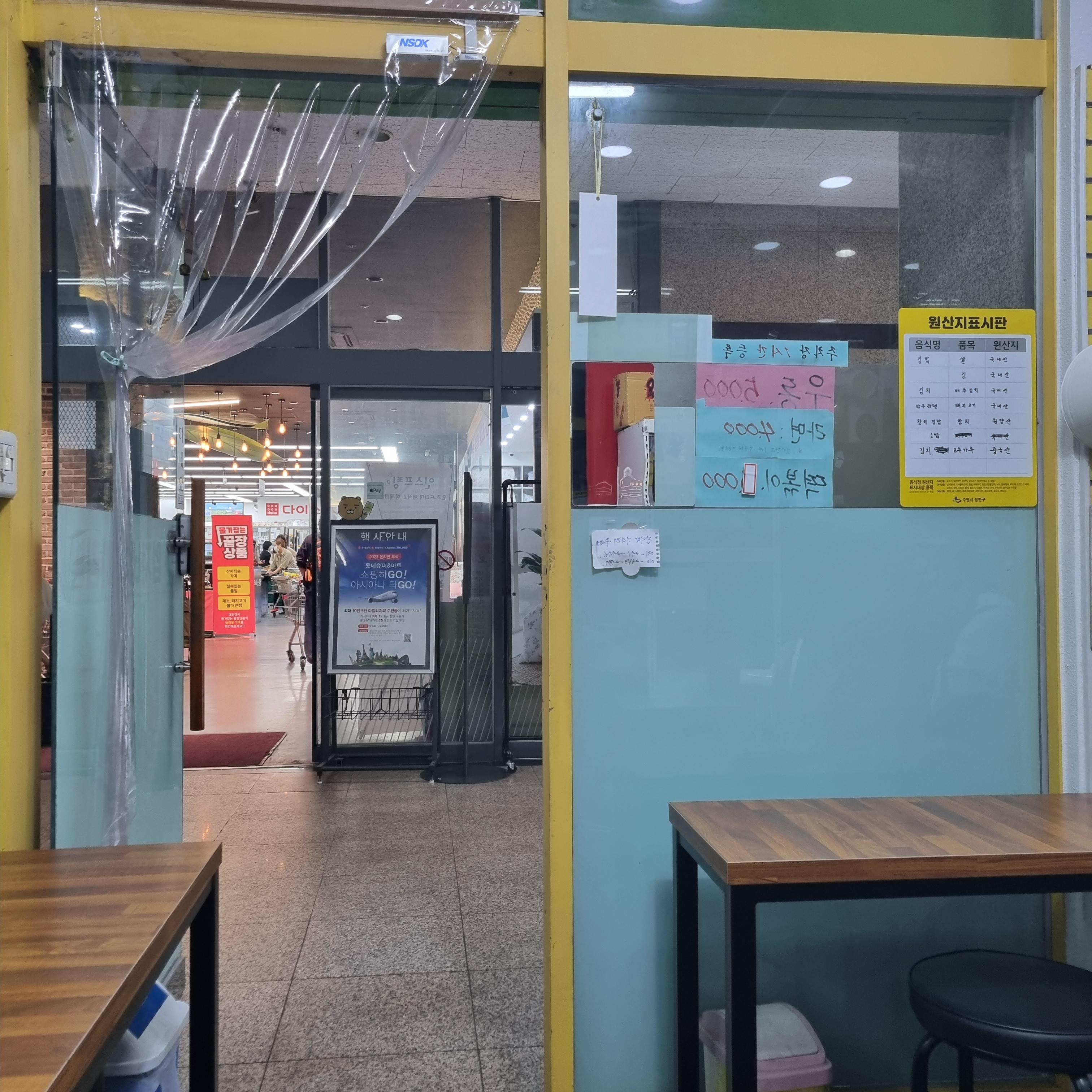우연히 롯데슈퍼 갔다가 들렸는데 맛이 괜찮더라고요. 그래서 종종 아이 친구들과도 김밥 먹을 일이 있으면 사서 가요. 아쉬운 점은 배달을 하지 않으셔서 꼭 매장에 들러야 하는 것인데 미리 전화하면 김밥을 싸두시거나 싸고 계시답니다. 물론 매장에서 먹을 수도 있어요. 사장님도 친절하세요.