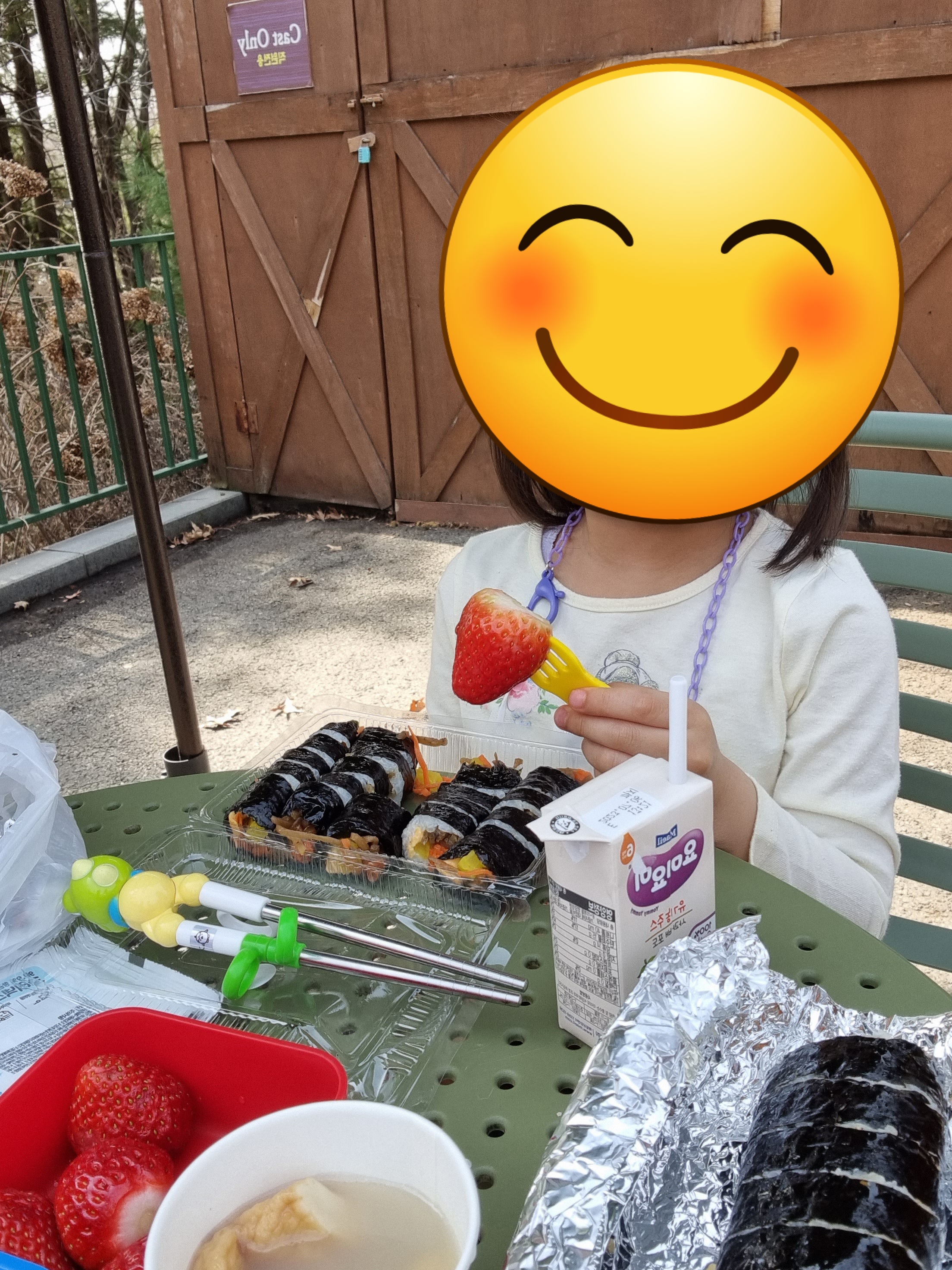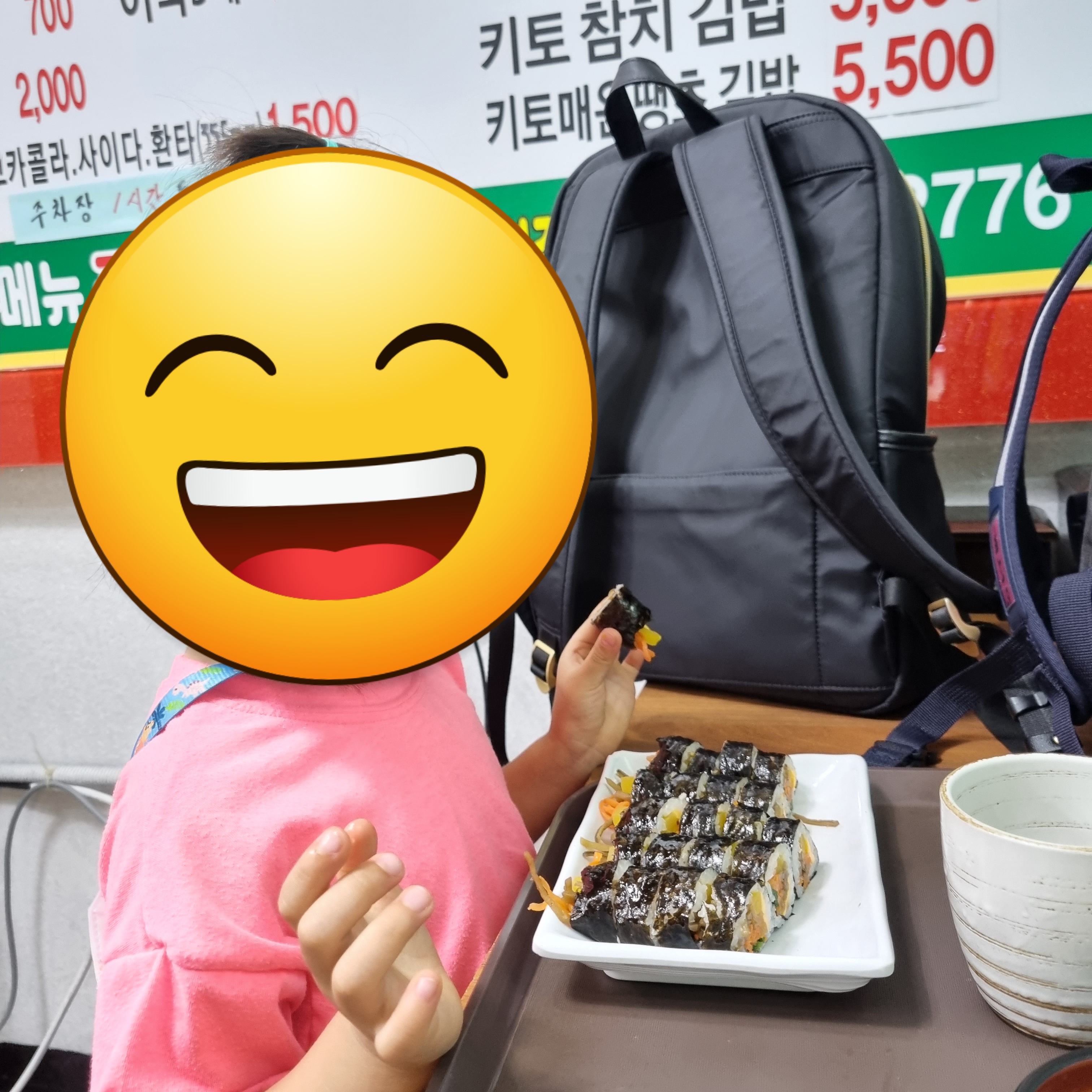 제가 여기서 김밥을 사서 먹이는 이유는 야채가 골고루 들어있기 때문이에요. 야채는 싫어하는데 김밥에 든 건 먹거든요.