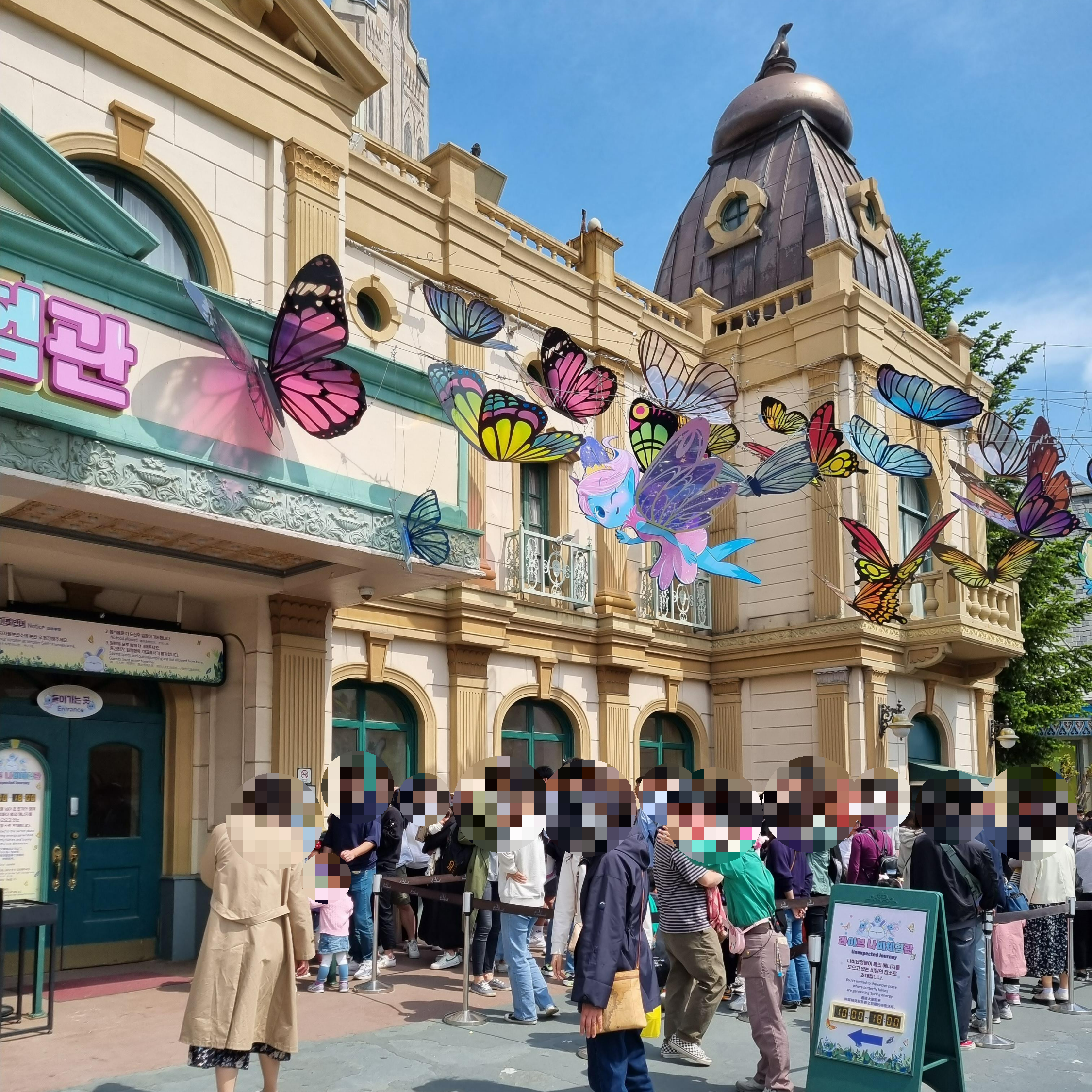 정문 근처에 위치한 나비체험관에도 이미 줄이 깁니다. 사진 왼쪽 입구 건너편에 이어서 다시 줄 서더라고요. 나비체험관은 일정 시간 간격마다 적정인원을 입장시키더라고요.