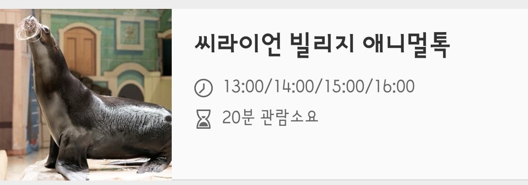 애니멀톡 예정된 시간에 운영됩니다. 슈퍼윙스 애니멀 톡이랑 씨라이언 빌리지 애니멀 톡 모두 실내에서 관람하는 프로그램이에요.